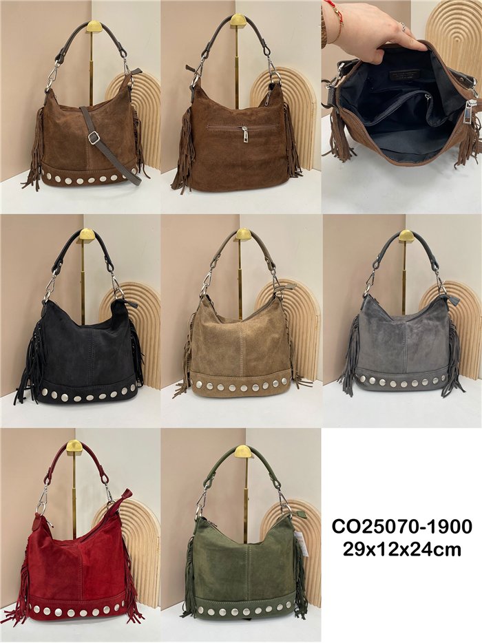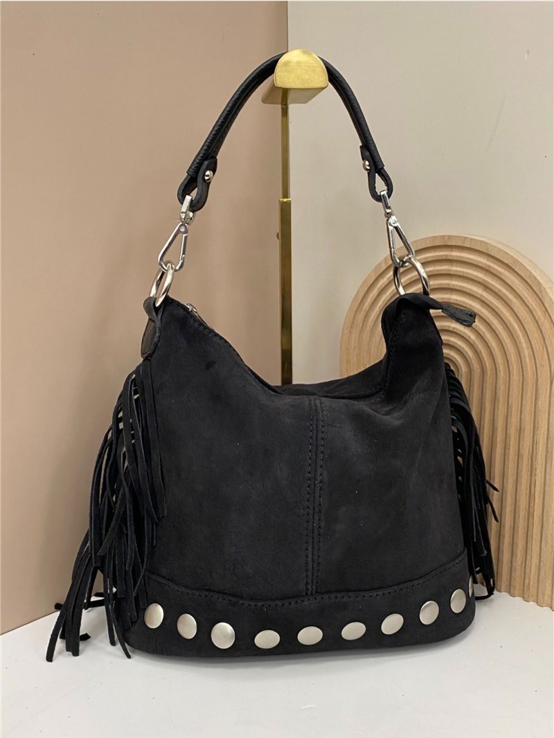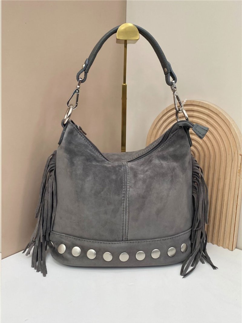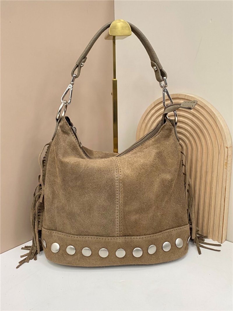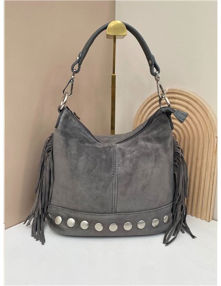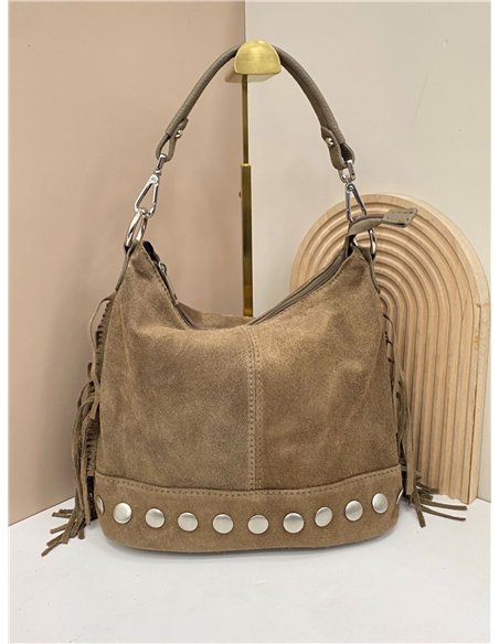 Détails de AB-CO25070 sac hobo en daim avec franges et clous.