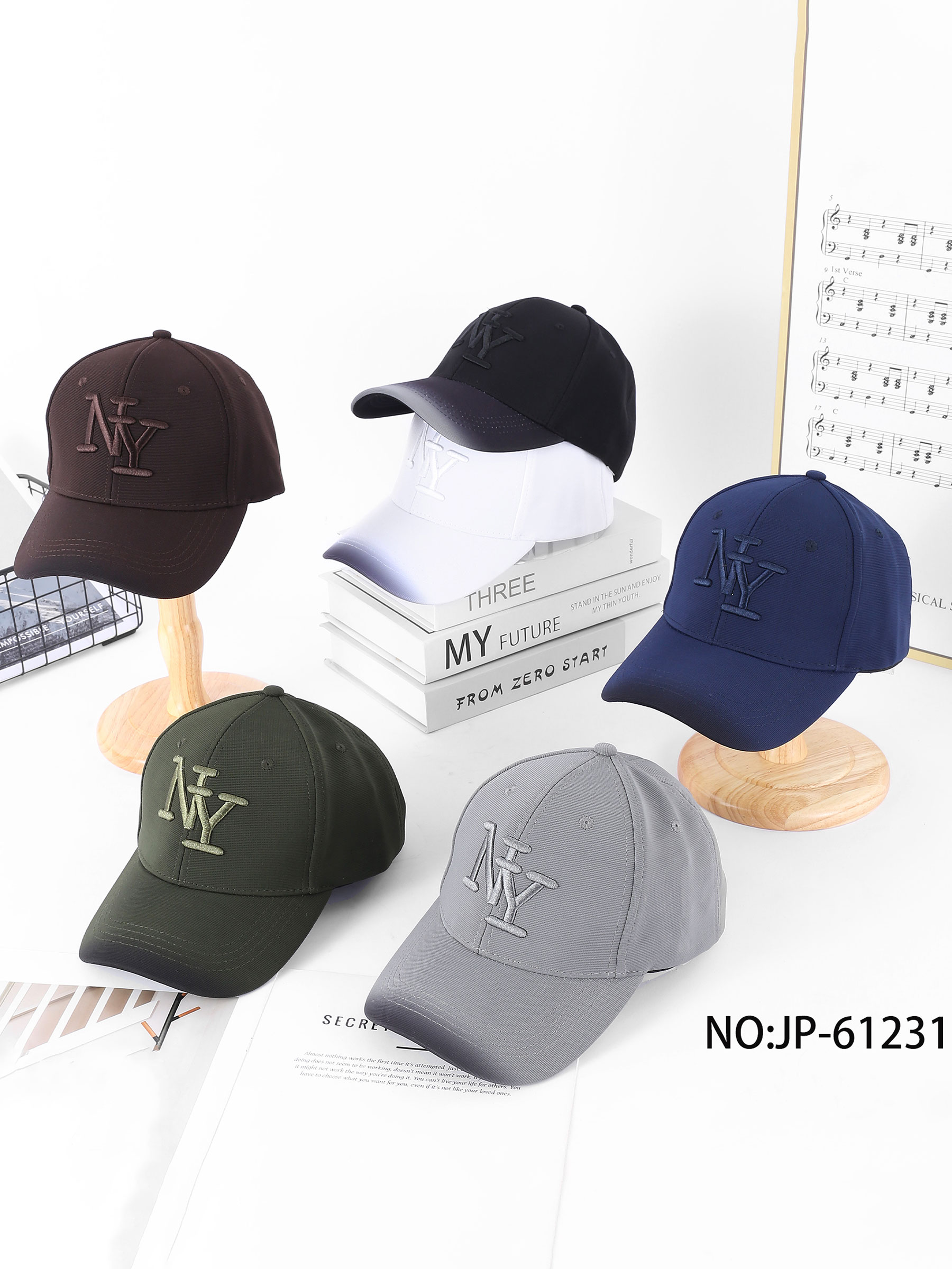 Nouveau Min. 12 Bonnets Casquette à visière avec feuille brodée BF-JP-61105 Couleurs assorties.Collection : Printemps/Été 2026. Voir le prix