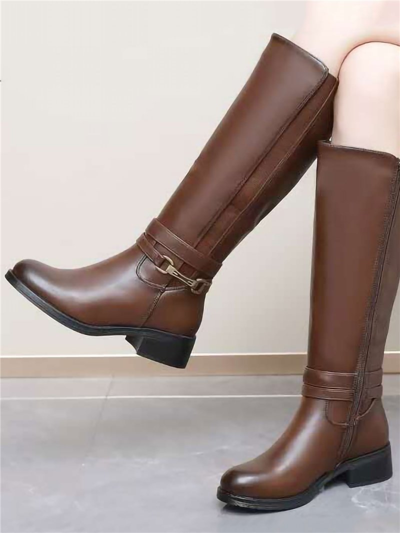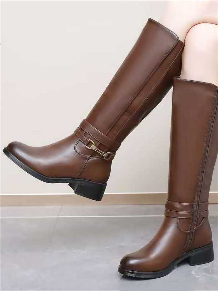 Botte haute avec détail métallique sur la sangle de la cheville et fermeture éclair latérale, talon bas.