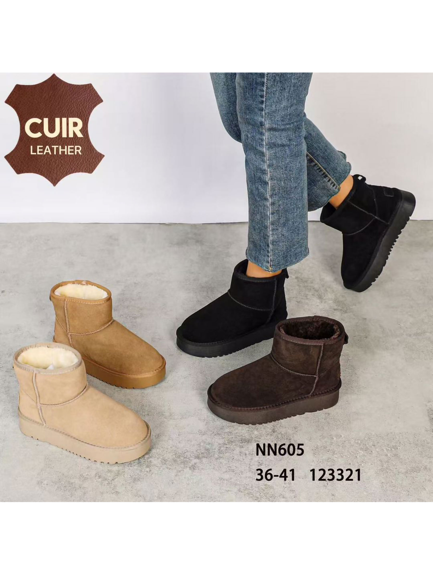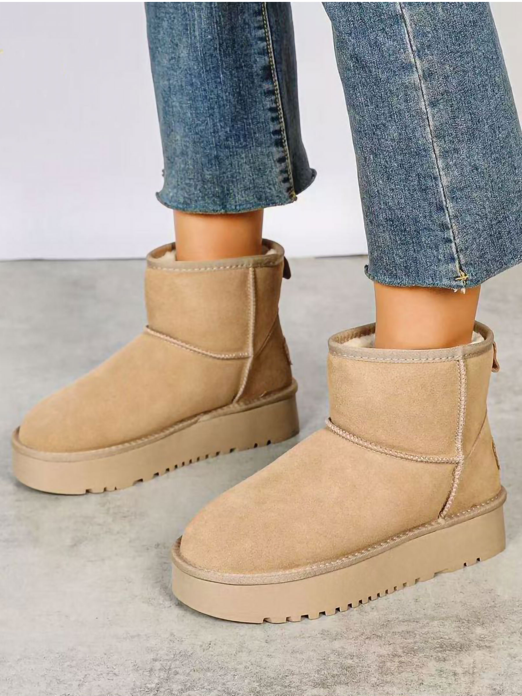 Bottine plate à tige basse. Effet daim. Semelle crantée.