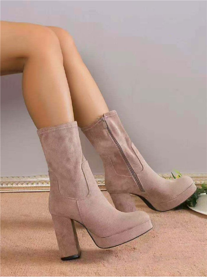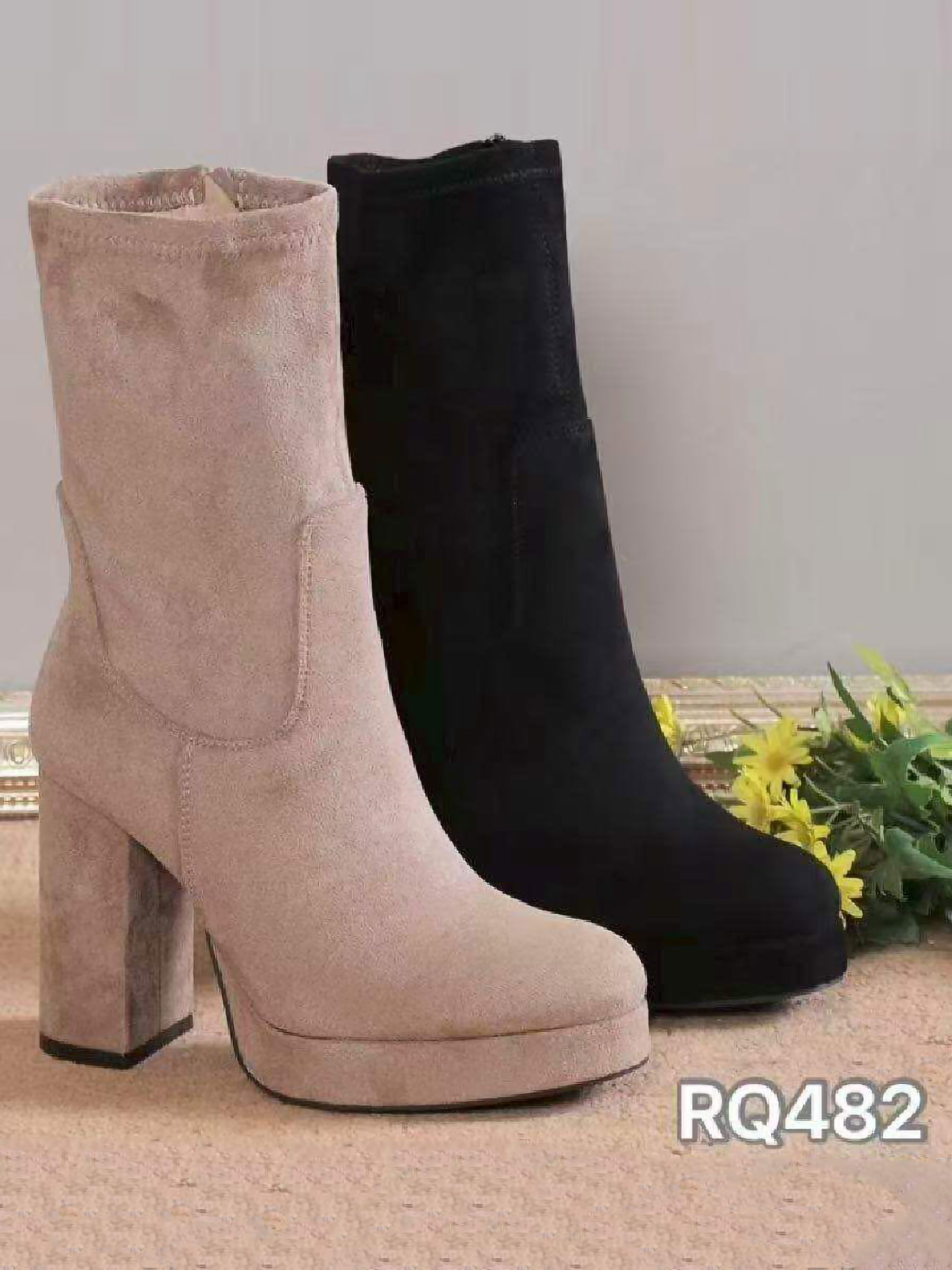 Détails de bottine plateforme talon large mi-mollet effet daim HQ-RQ482