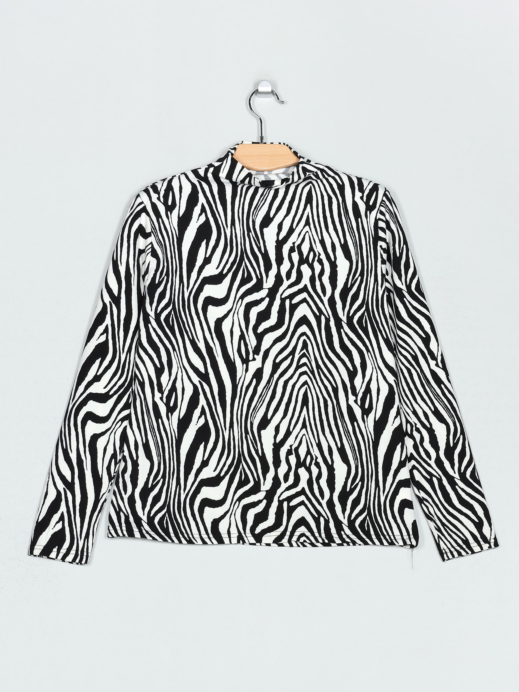 T-shirt imprimé. Col perkins. Manches longues. Tissu élastique.