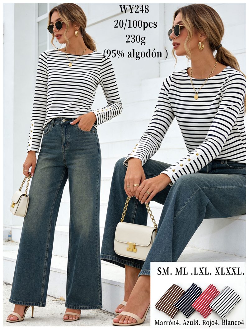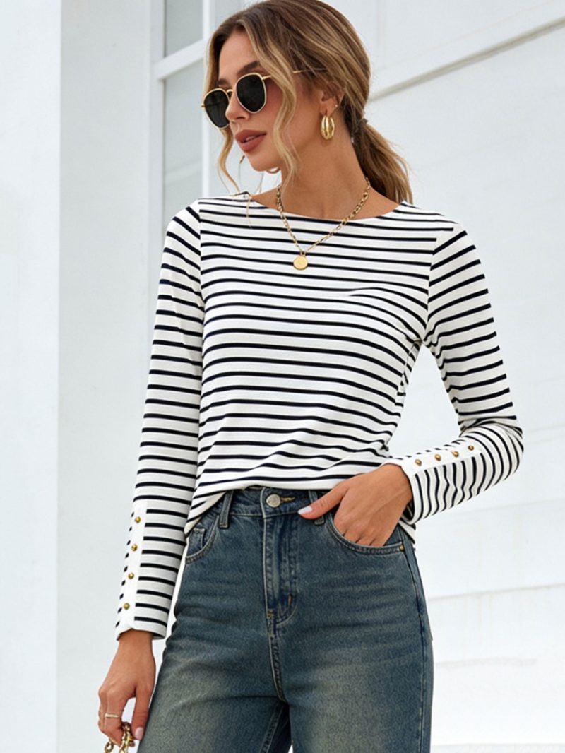 T-shirt rayé avec boutons dorés sur les manches