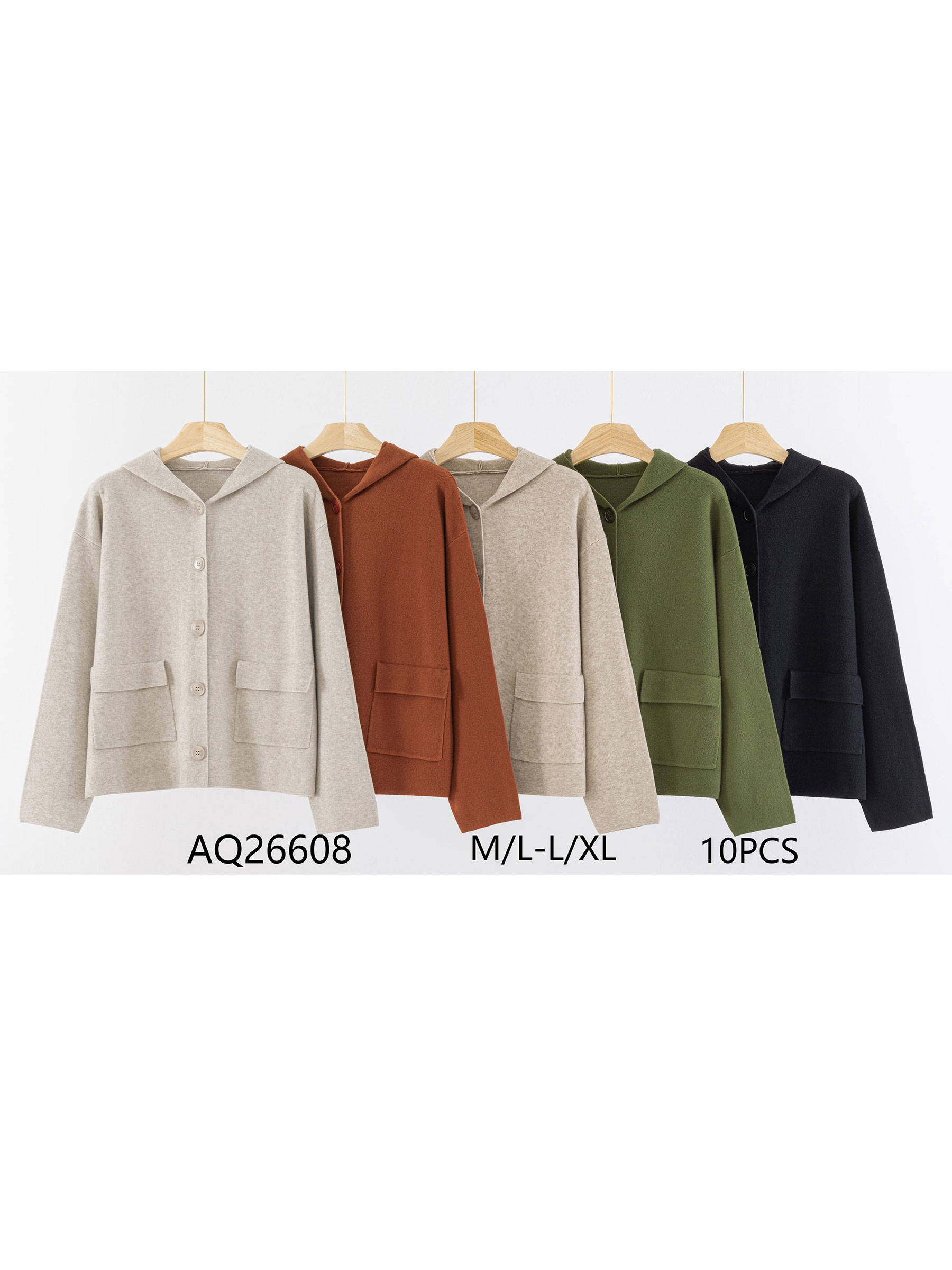 Détails de la veste en tricot extra chaud avec capuche MF-AQ26608