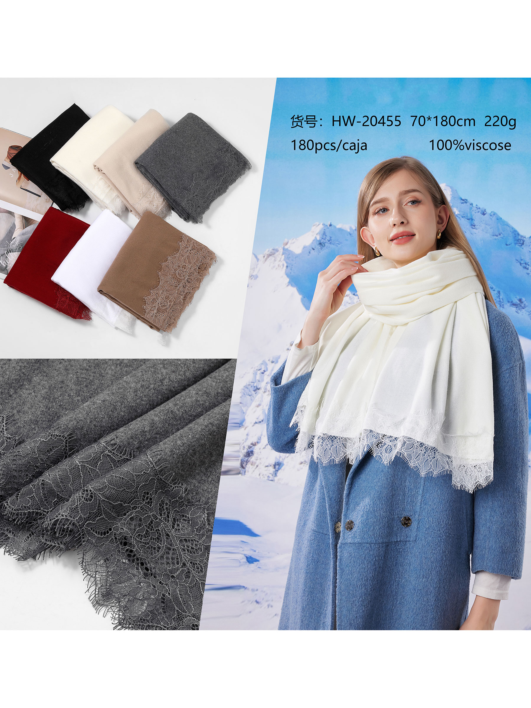 Détails de écharpe en dentelle HY-HW-20455