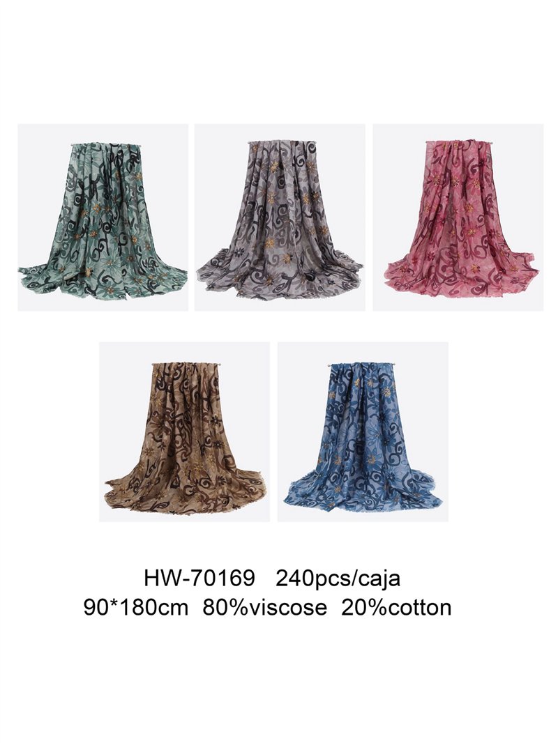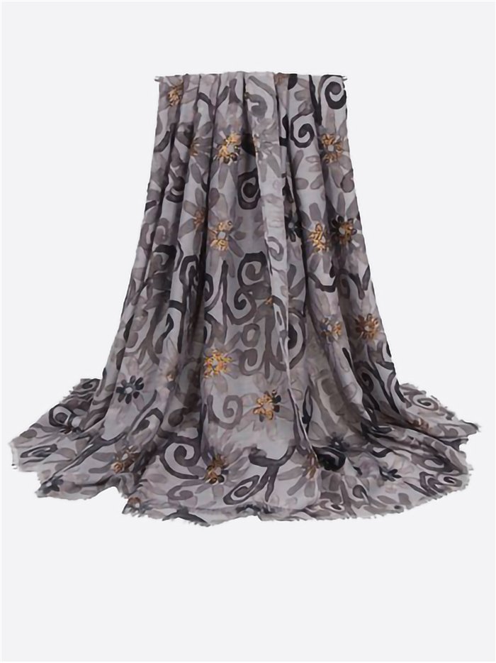Détails du foulard fleurs métallisées effiloché HY-HW-70169