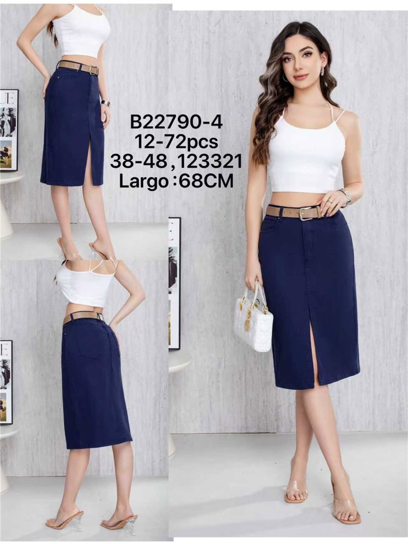 Jupe midi en jean avec ceinture et fente sur le devant