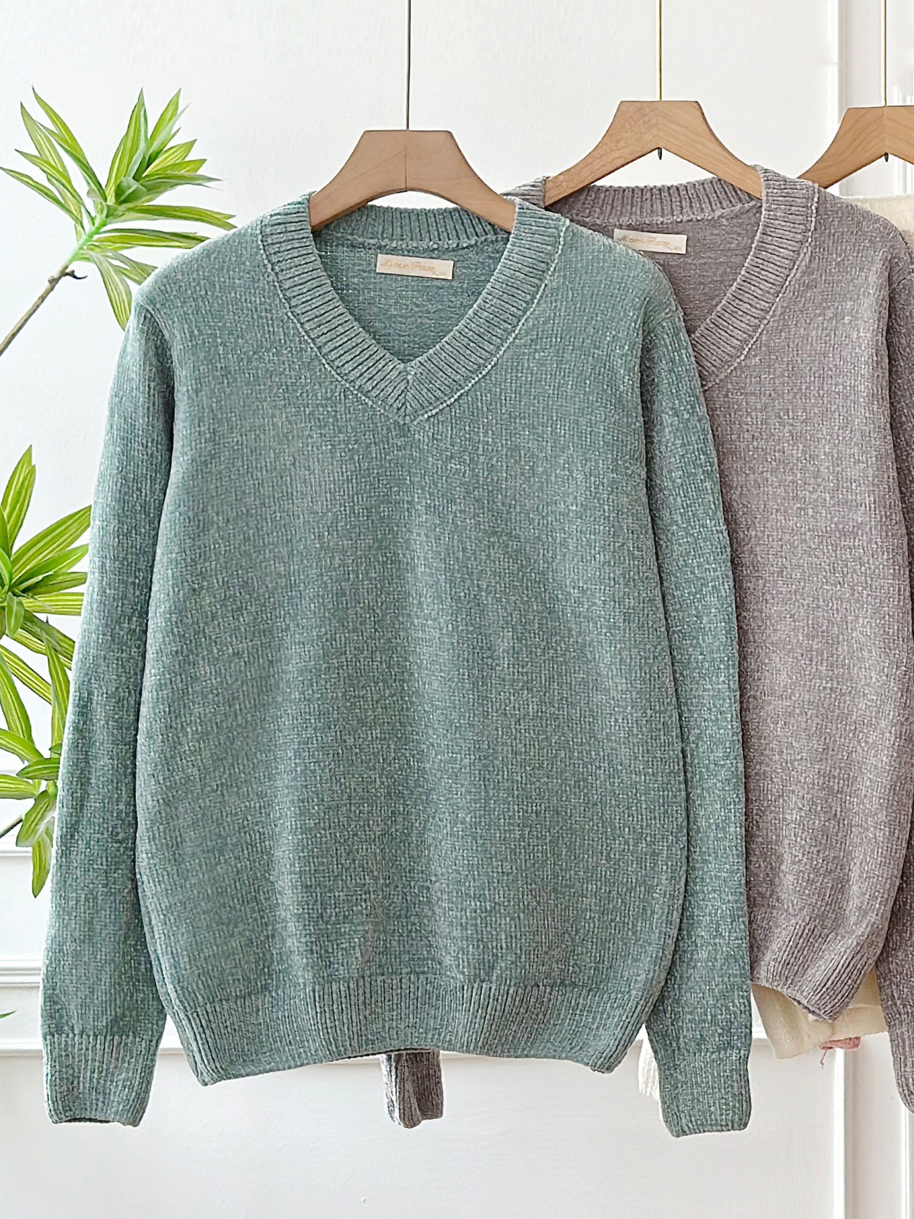 Détails du pull en chenille à col en V FA-5171