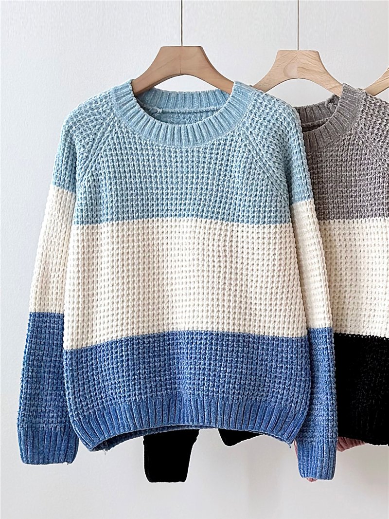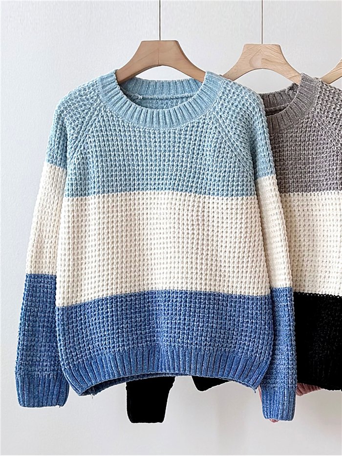 Détails du pull en chenille à blocs de couleur col rond FA-5675
