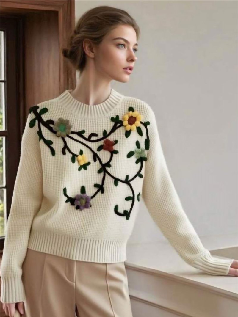 Detalles de jersey flores bordadas en relieve LS-AB897