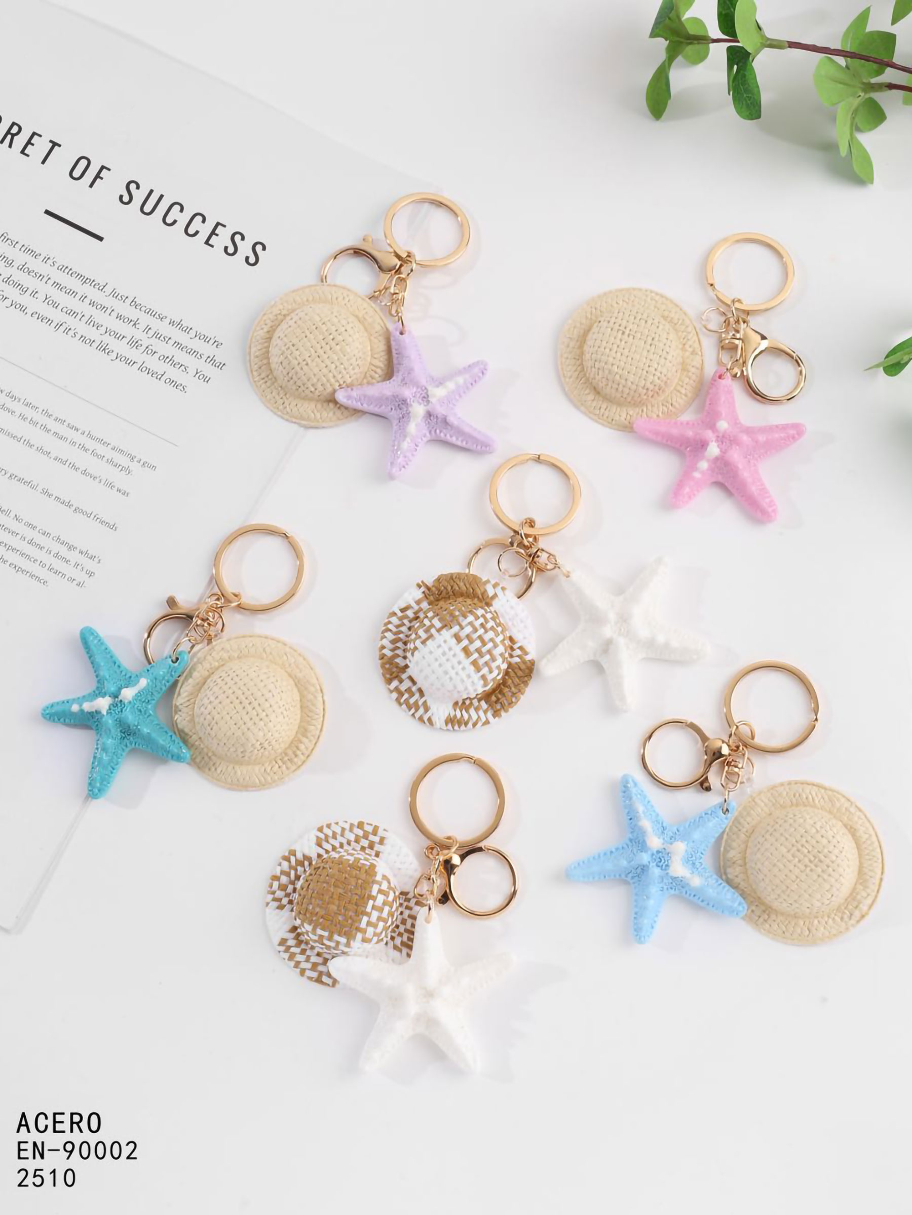 Porte-clés chapeau de plage avec étoile de mer