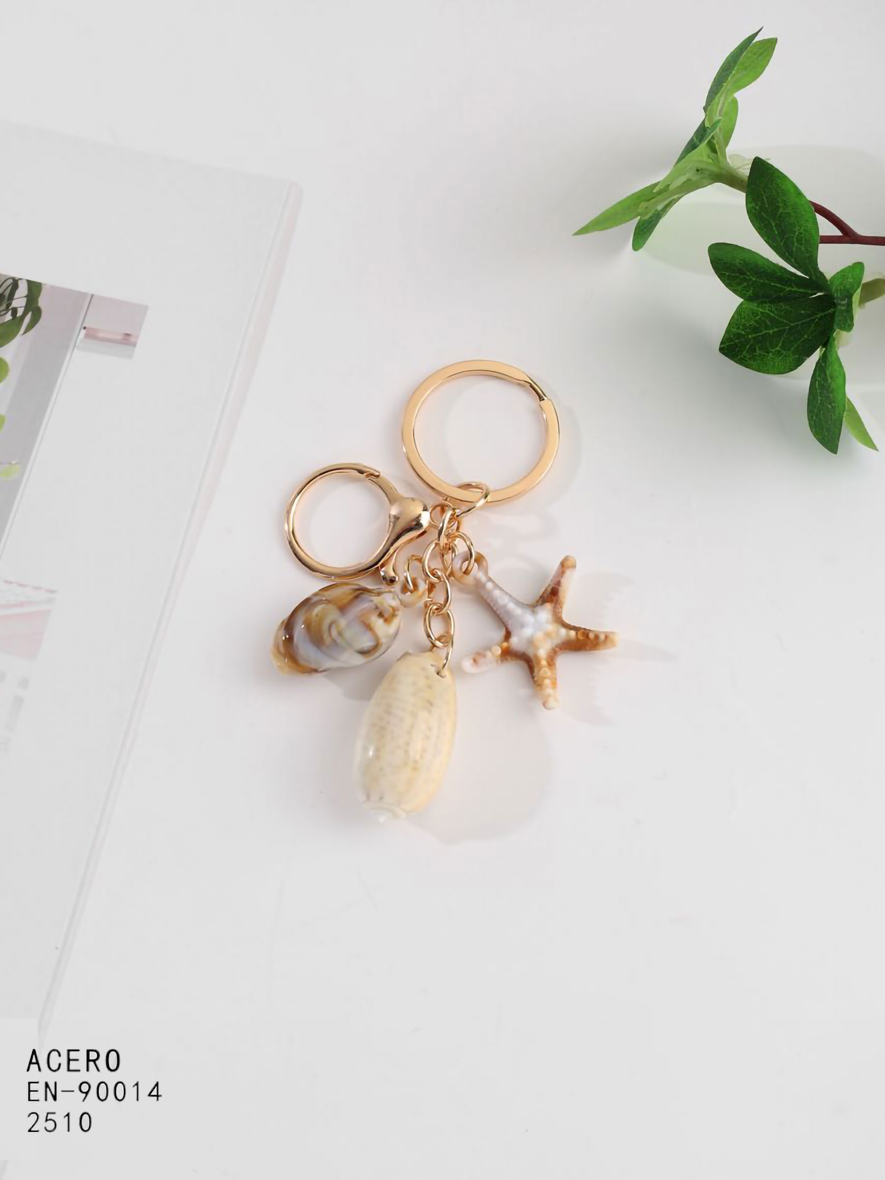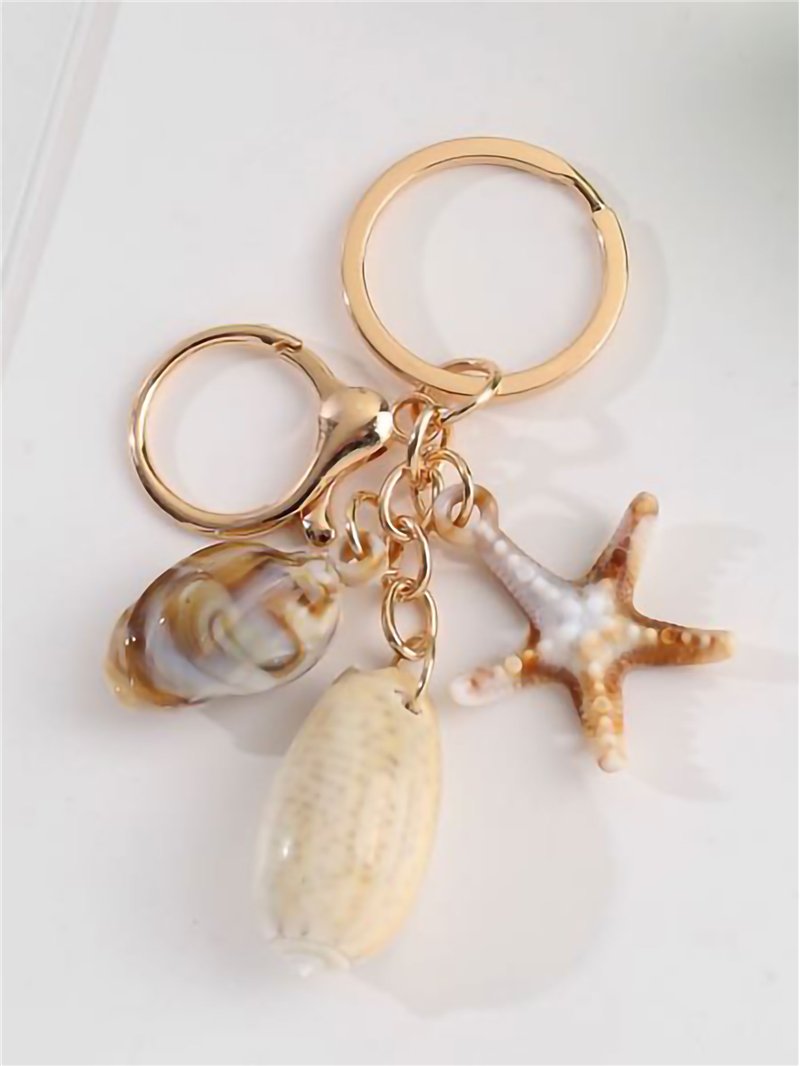Porte-clés marin avec coquillages et étoiles de mer à effet naturel