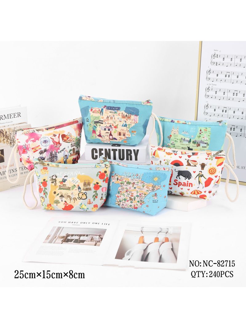 Trousse de toilette imprimée carte d'Espagne avec cordon de serrage.