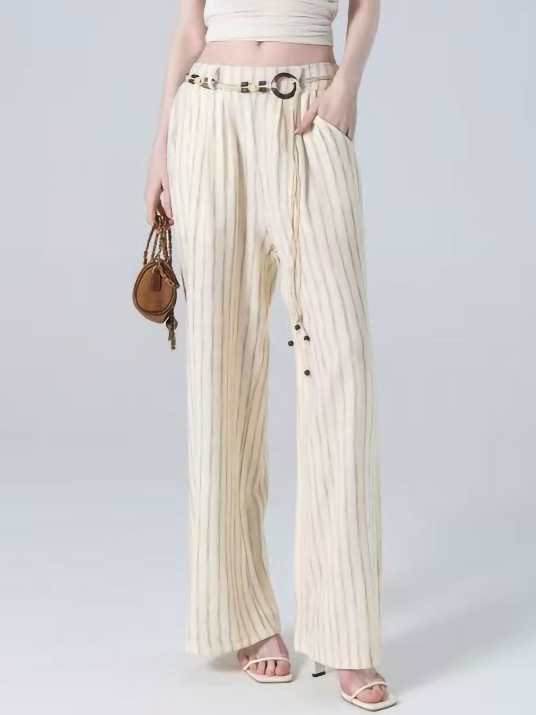 Pantalon palazzo rayé avec cordon de serrage