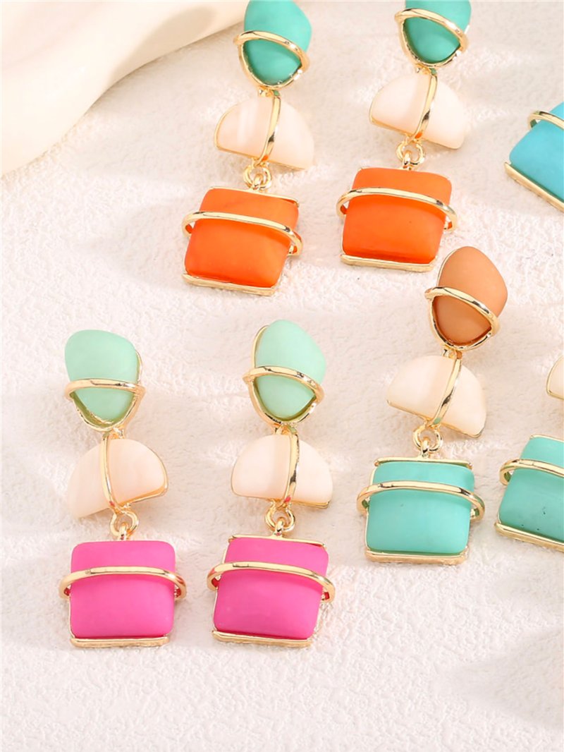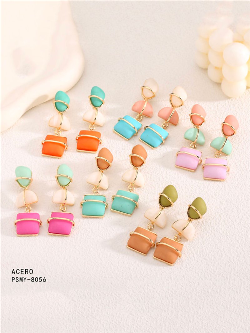 Boucles d'oreilles longues géométriques en résine avec effet pierre. Acier inoxydable. Couleurs assorties.