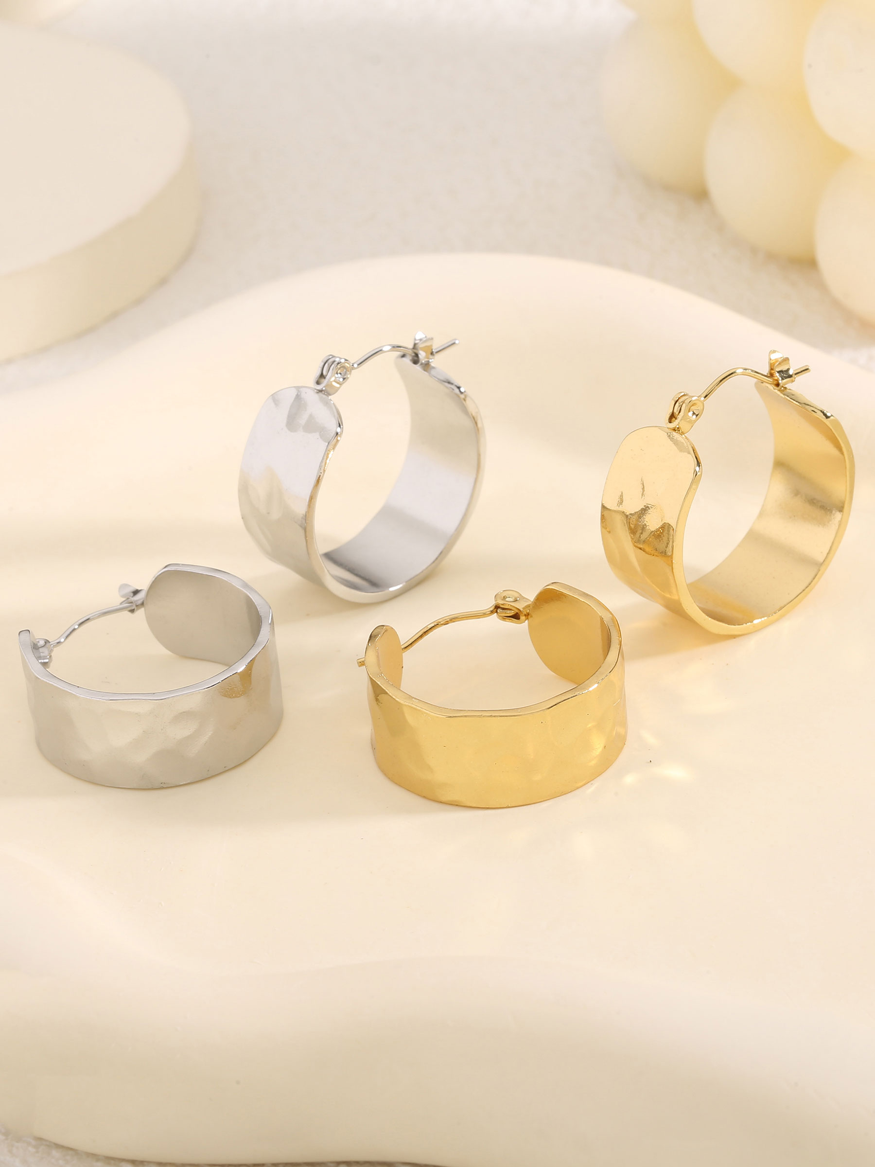 Détails des boucles d'oreilles créoles effet martelé - acier inoxydable BS-YS137-YS138