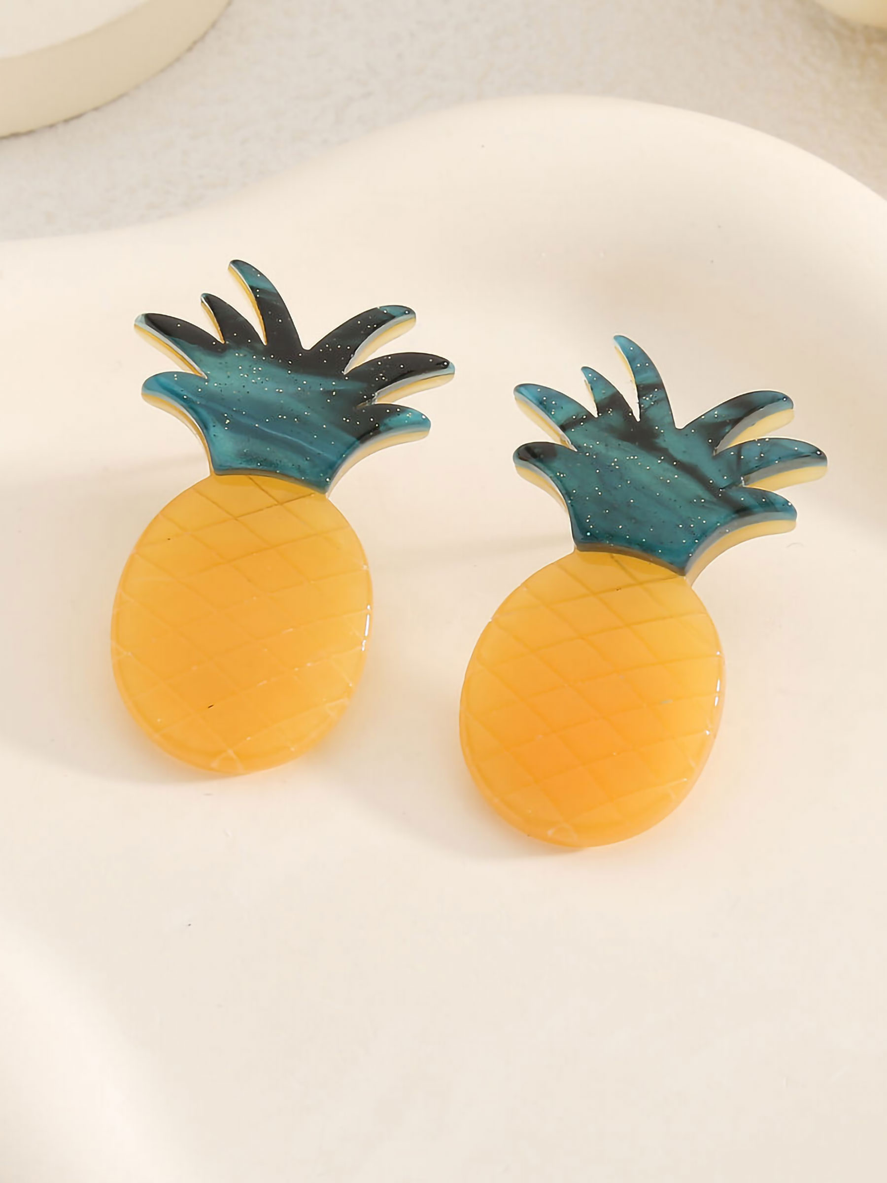 Boucles d'oreilles en résine d'ananas - Acier inoxydable