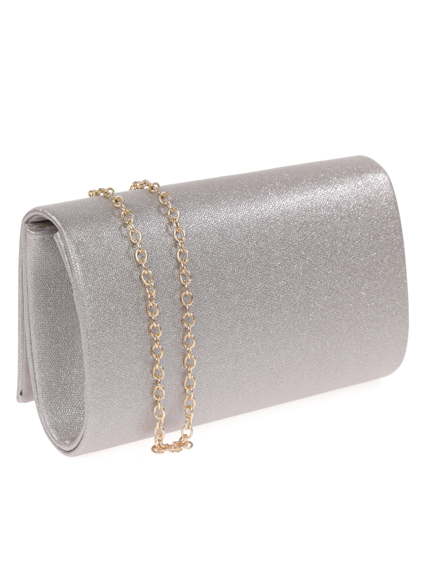 Sac de soirée. Matériau simili cuir. Effet métallisé. Anse d'épaule en chaîne. Doublure avec poche intérieure. Fermeture par aimant.