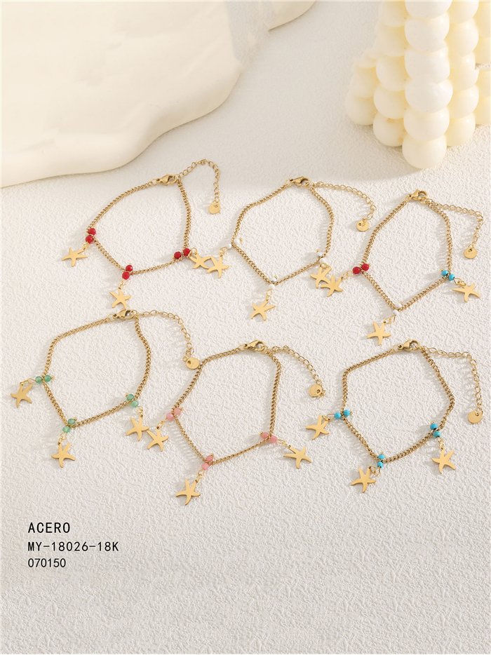 Détails du bracelet perles de résine charme étoiles de mer - acier inoxydable BS-MY18026