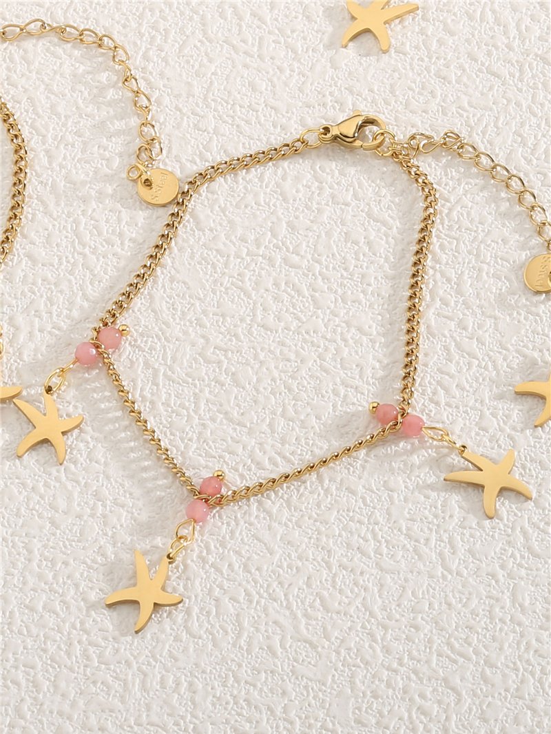 Bracelet perles de résine charme étoiles de mer - Acier inoxydable