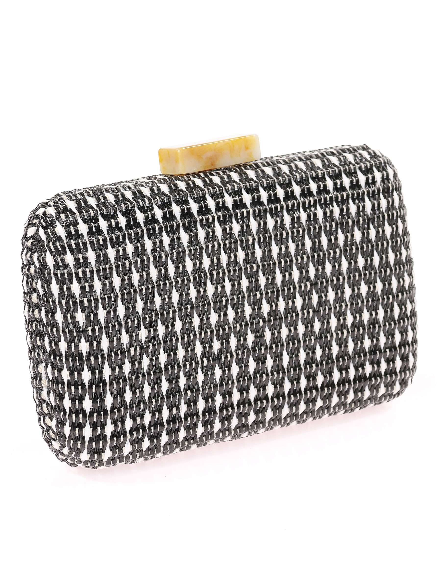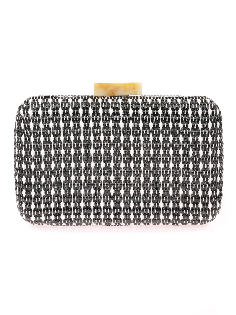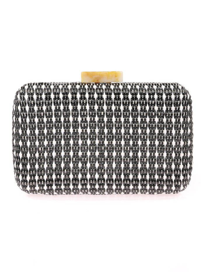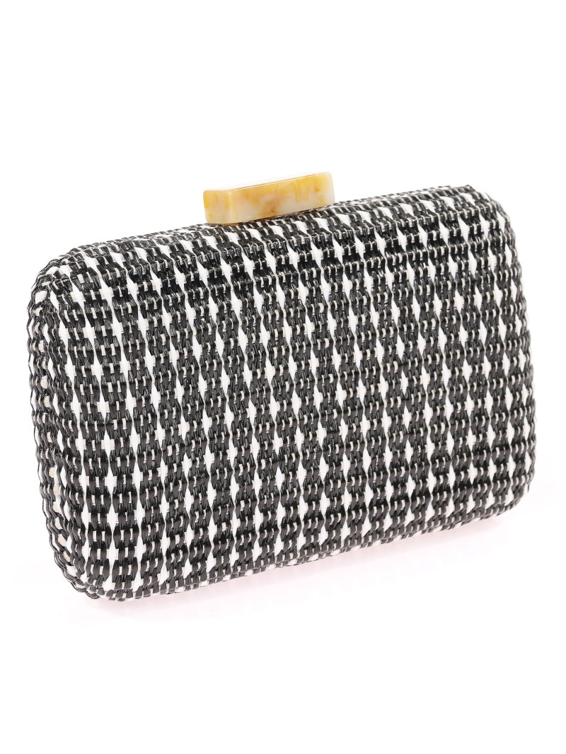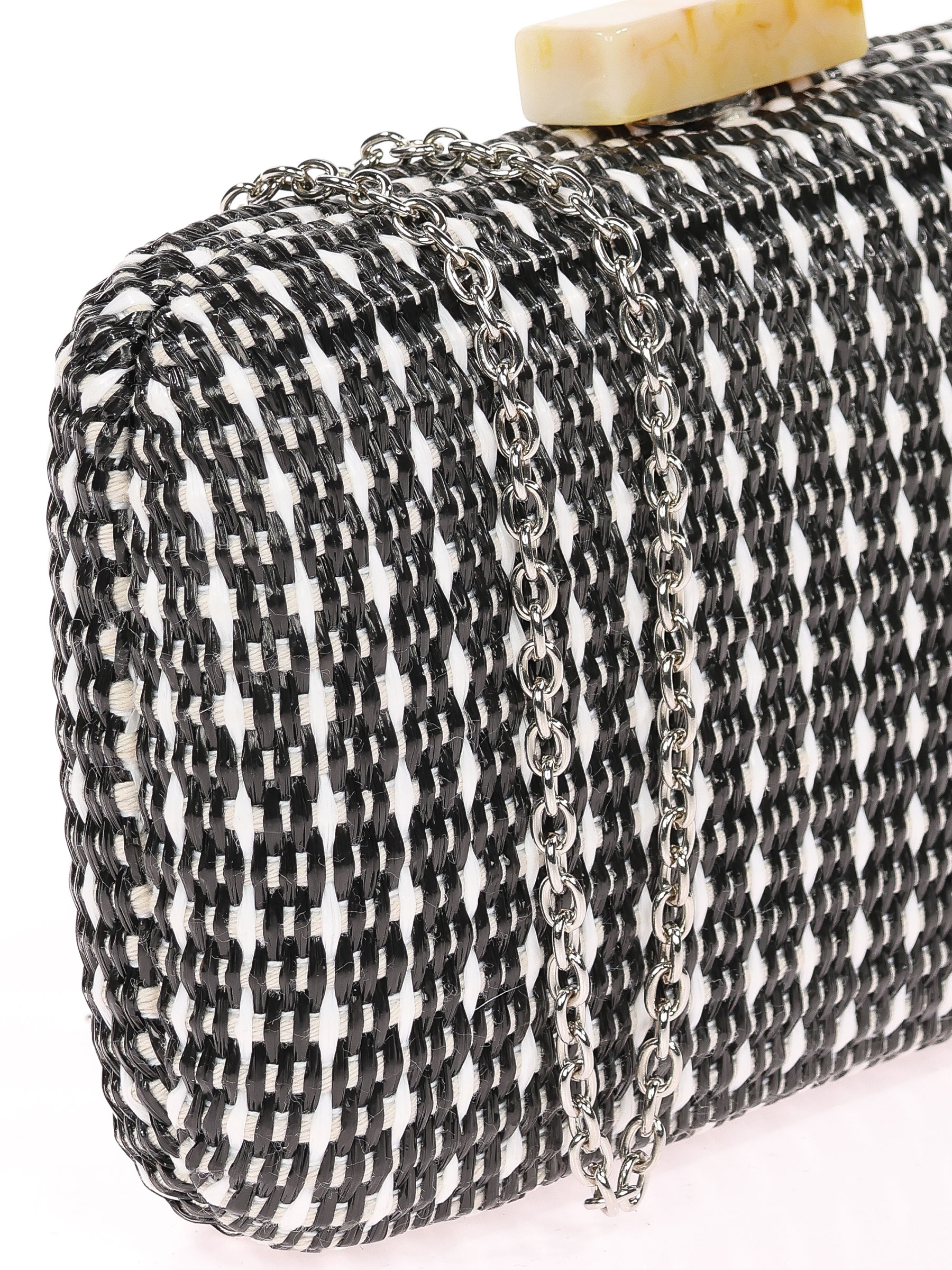 Détails de AD-22269 NOIR-BLANC pochette de soirée effet raphia perles