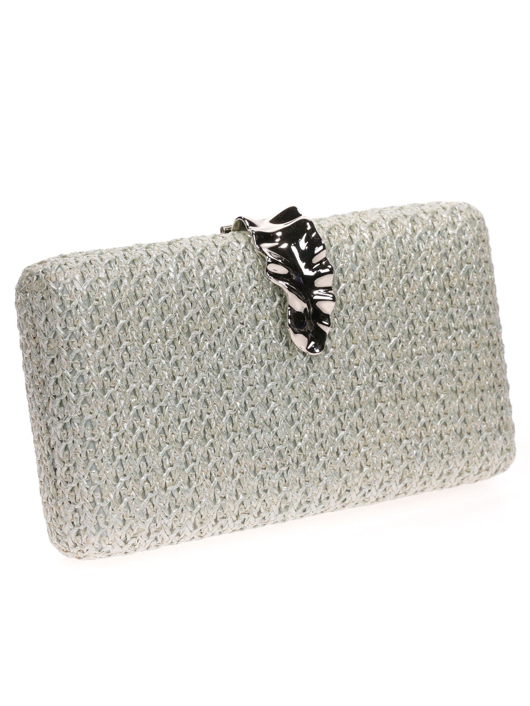 Pochette de fête en raphia avec fermoir feuille vert clair