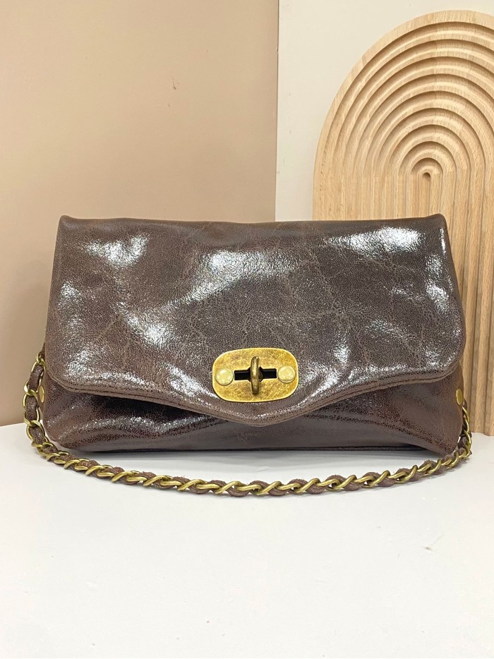 Mini sac à main en cuir à rabat marron