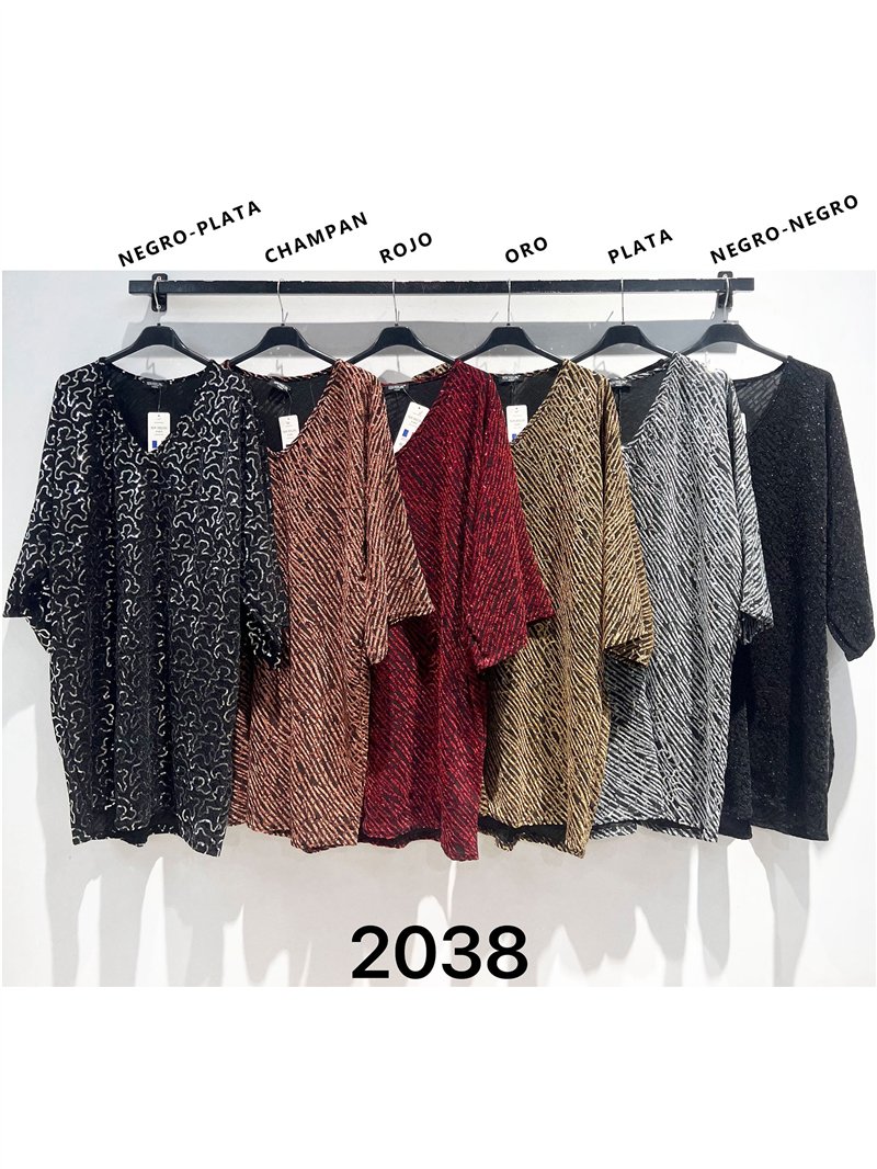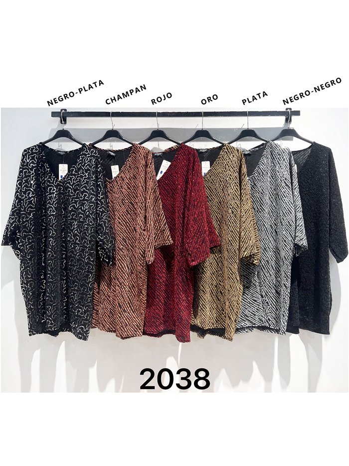 Robe de soirée ample avec des paillettes. Encolure en V et manches tombantes aux coudes.