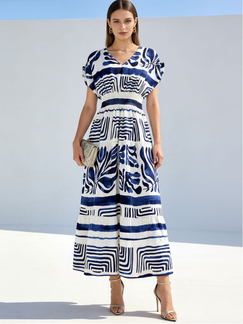 Robe longue imprimée à taille froncée