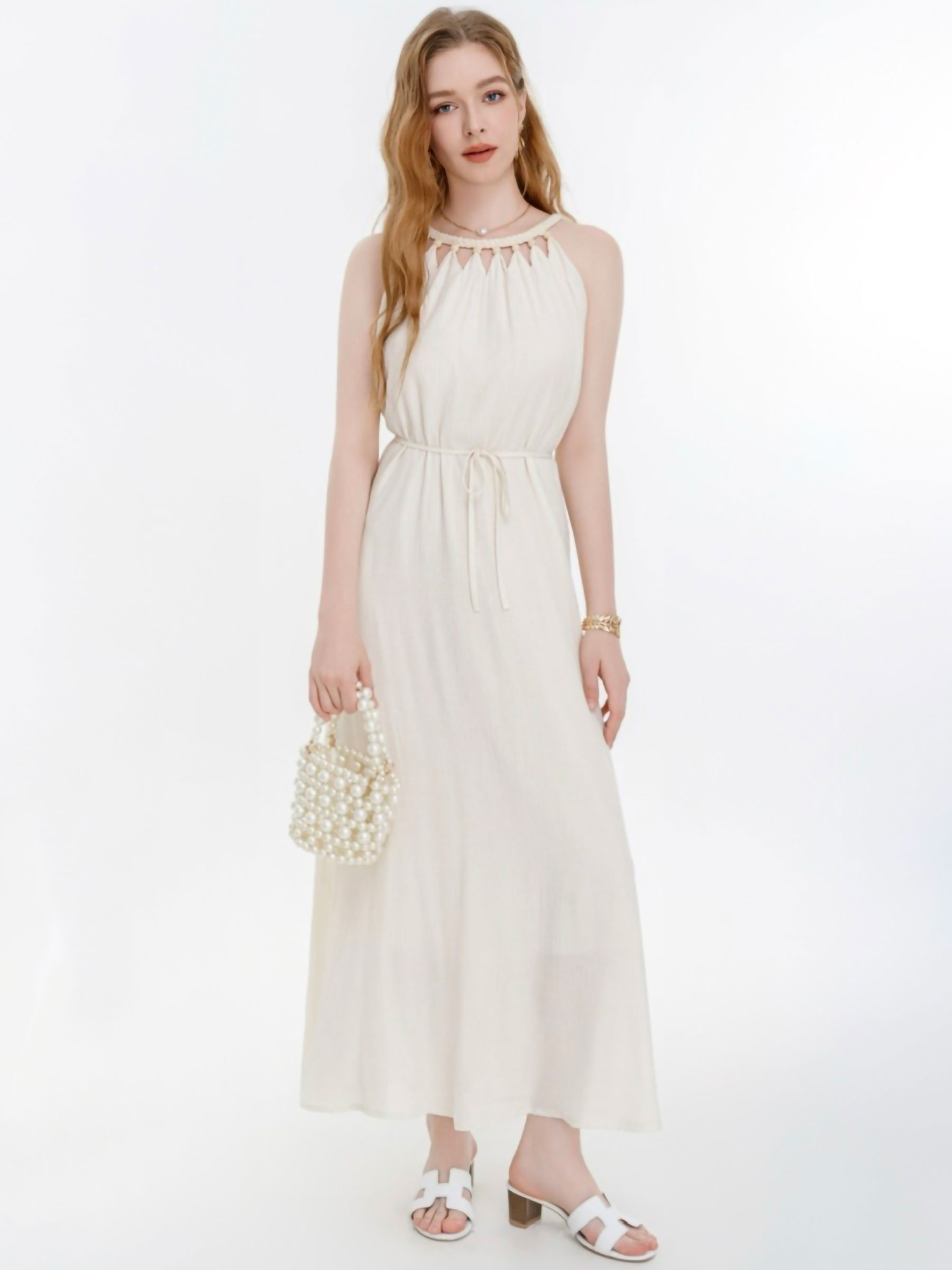 robe longue et fluide à col halter simple