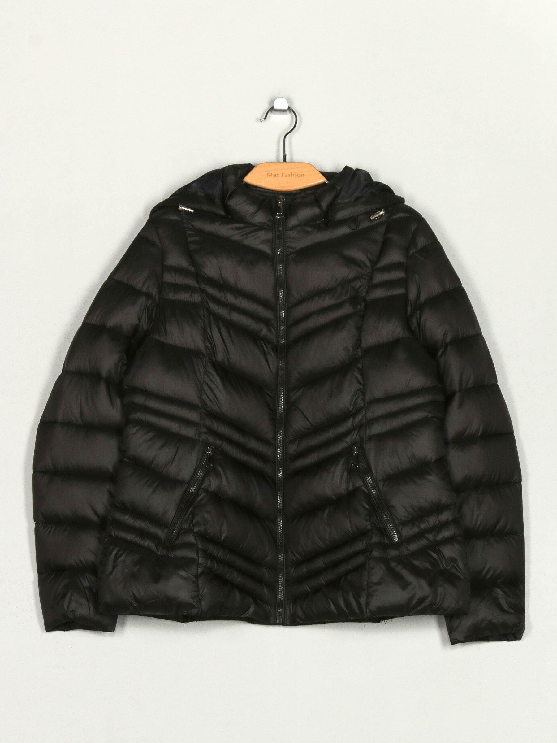 Dettagli della giacca con cappuccio metalizzata MF-AF-83103-1-BLACK