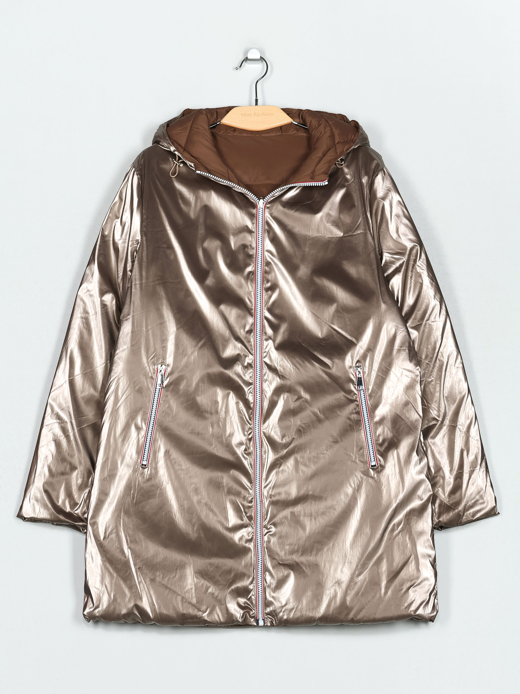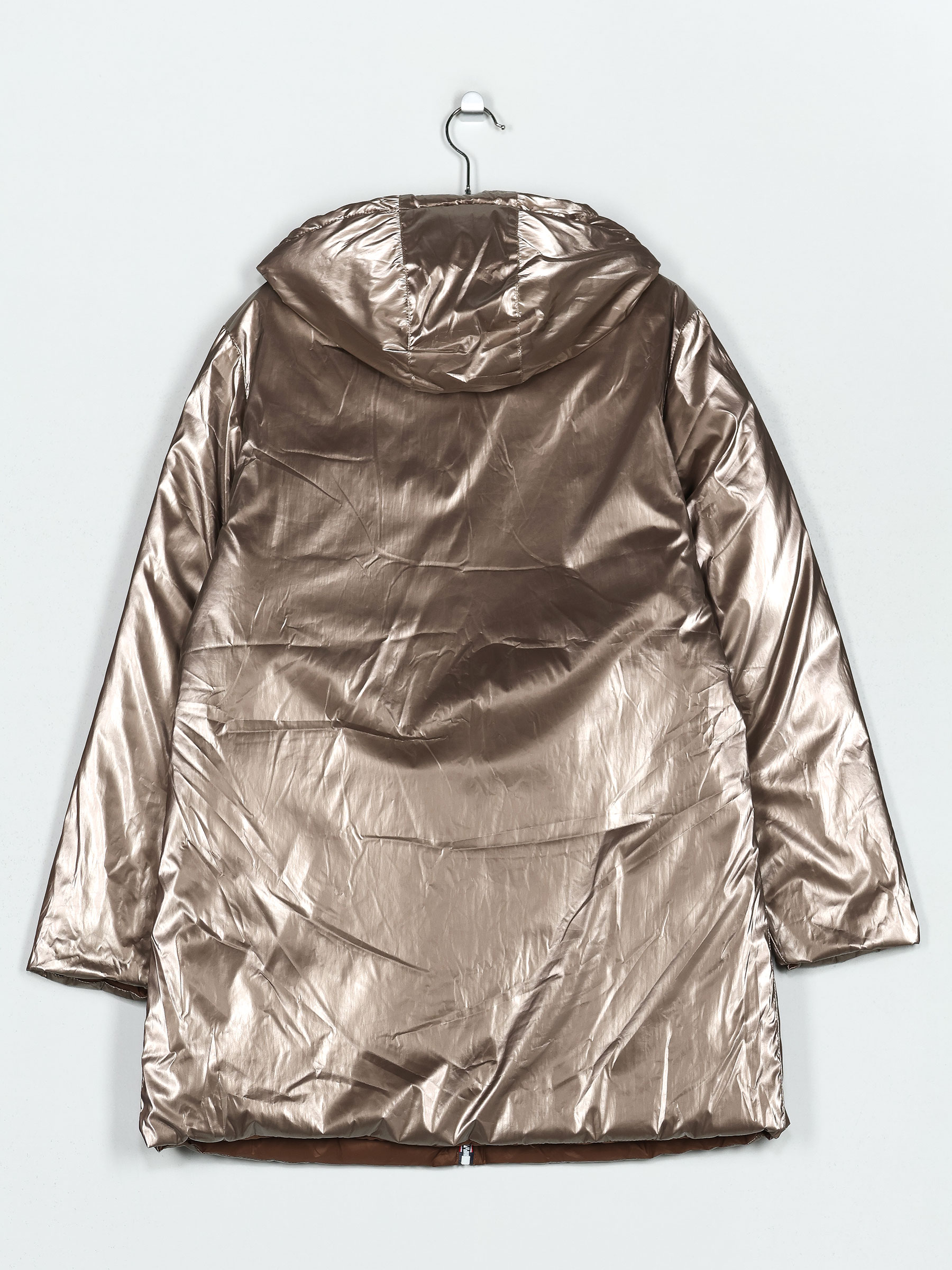 Dettagli di anorak ampio reversibile metalizzato con cappuccio MF-MF006-6-CHAMPAGNE