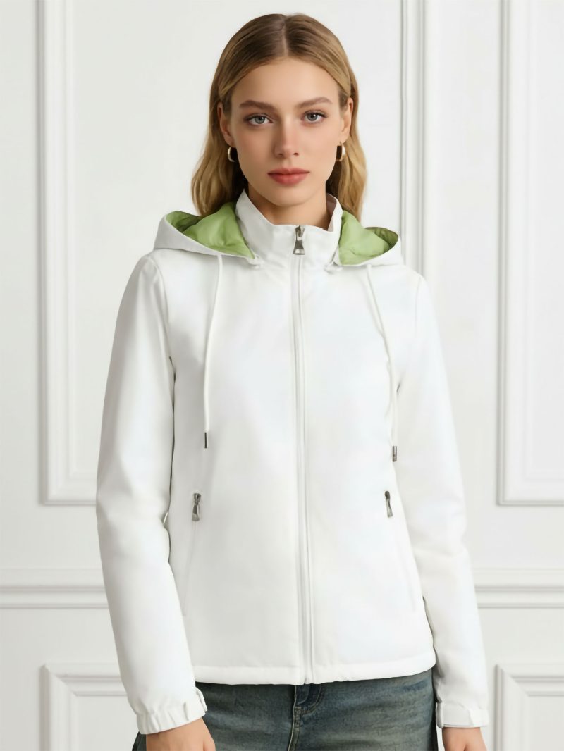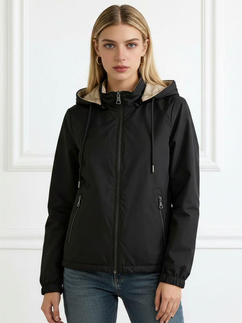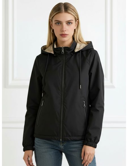 Giacca reversibile. Cappuccio removibile. Collo alto. Chiusura con zip. Manica lunga. Tasche laterali. Un lato liscio. Un lato trapuntato.