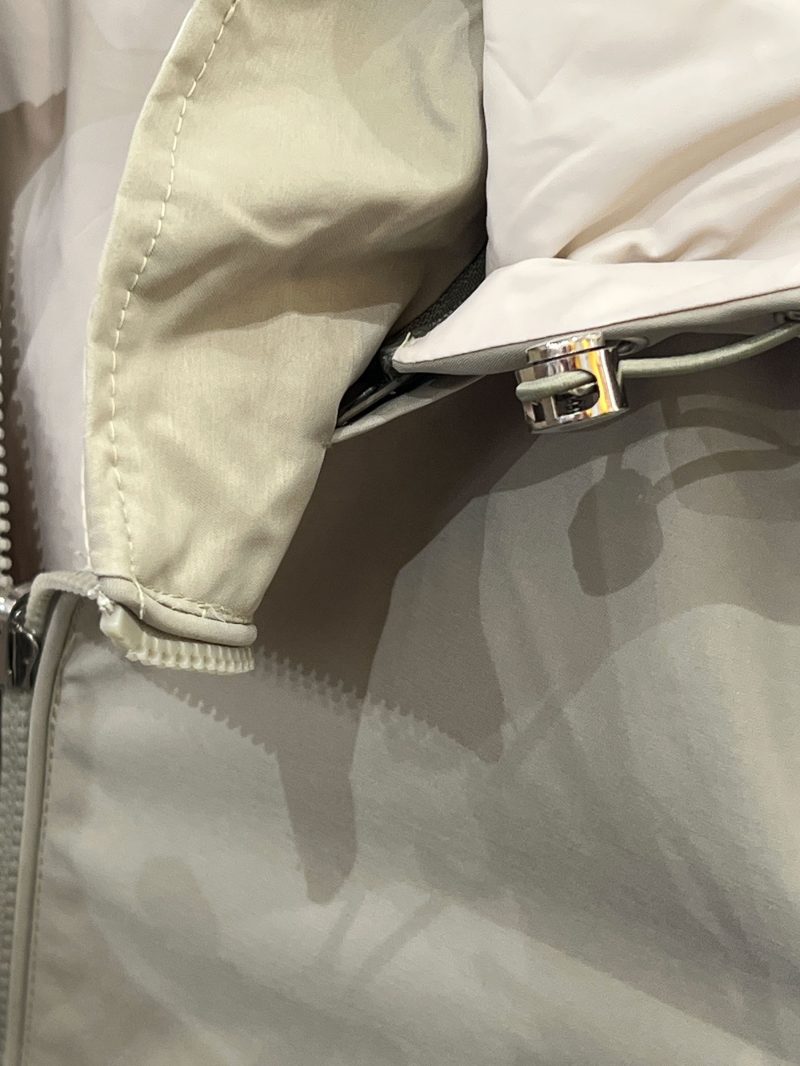 Giacca reversibile. Cappuccio removibile. Collo alto. Chiusura con zip. Manica lunga. Vita regolabile con coulisse. Tasche laterali con zip.