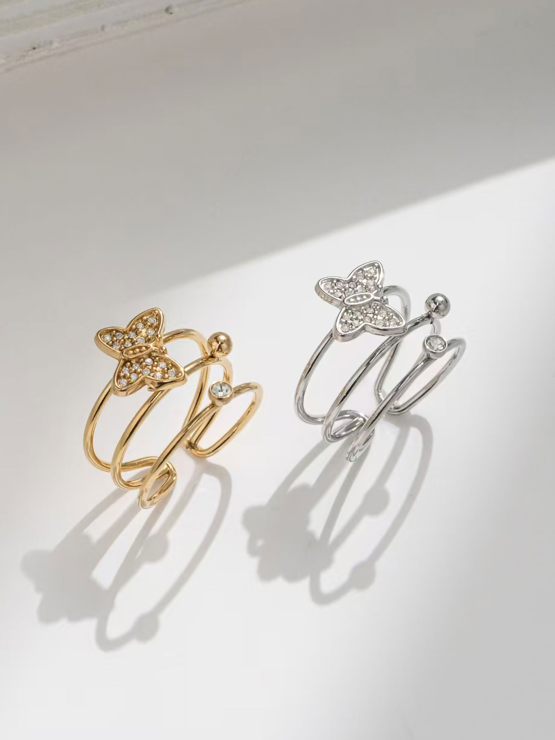 Dettagli dell'anello farfalla con zirconi - acciaio inossidabile BS-WF366-WF367