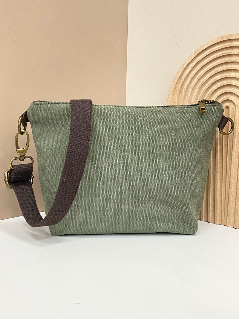 Bandolera in tessuto canvas. Tasca posteriore con chiusura a cerniera. Tracolla regolabile e rimovibile. Chiusura con cerniera metallica. Prodotto in Italia.