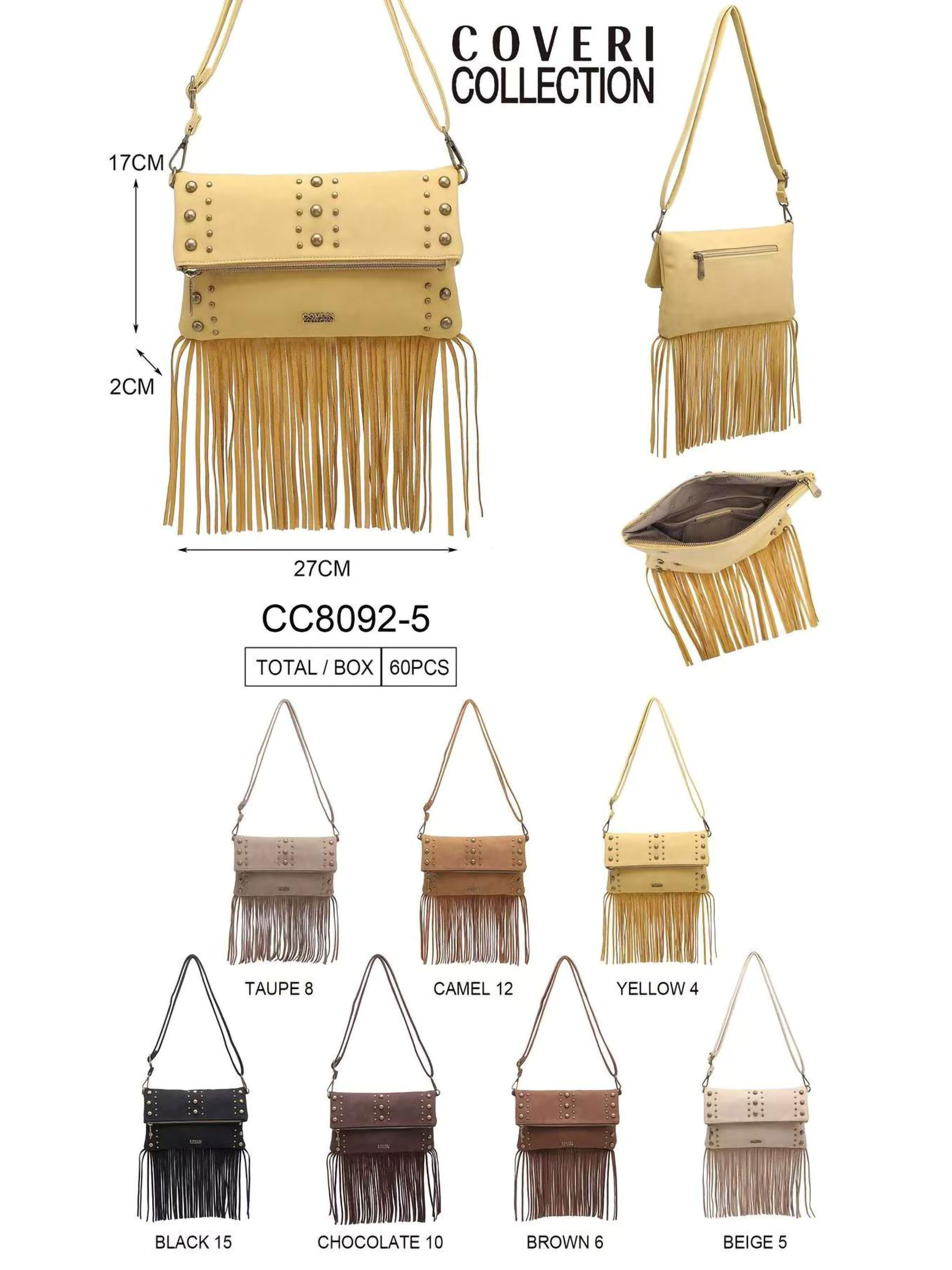 Borsa a tracolla boho con borchie e frange