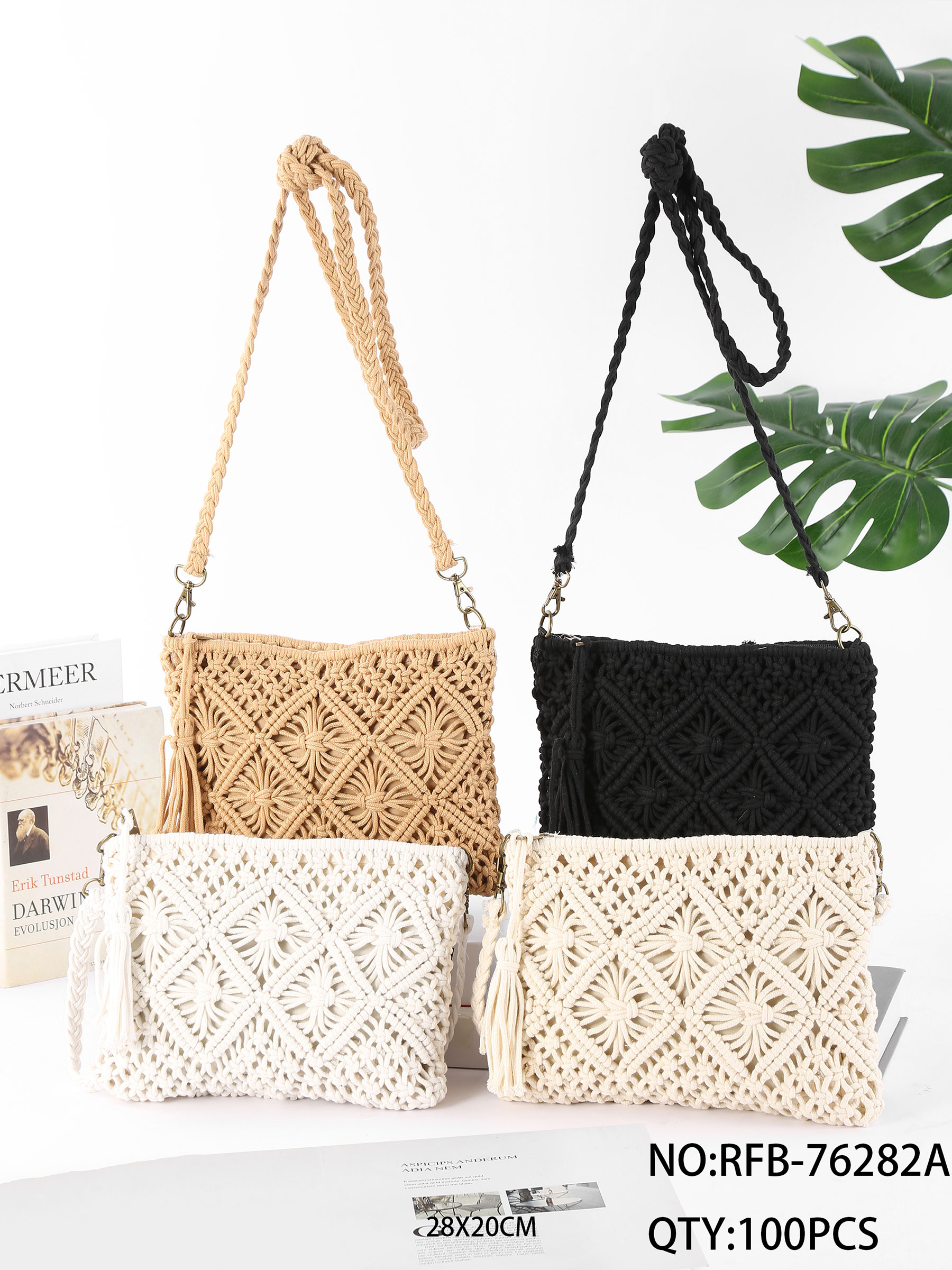 Borsa a tracolla geometrica in macramè con nappa