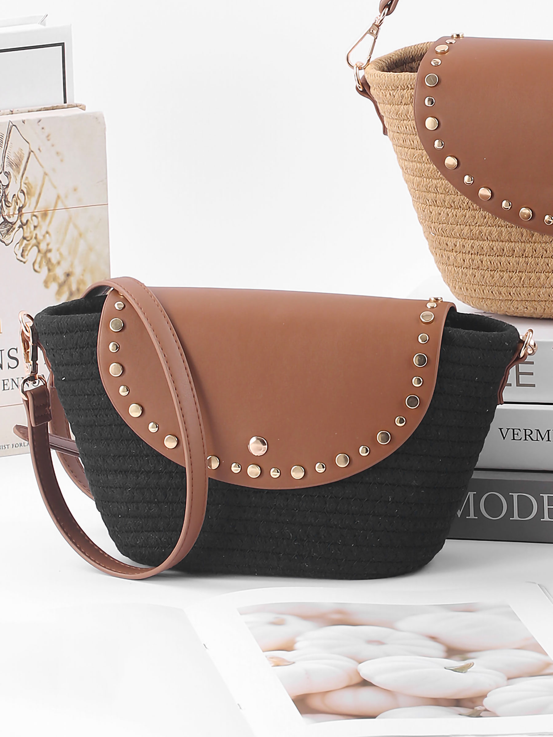 Borsa a tracolla con patta e borchie Borsa a tracolla con patta e borchie