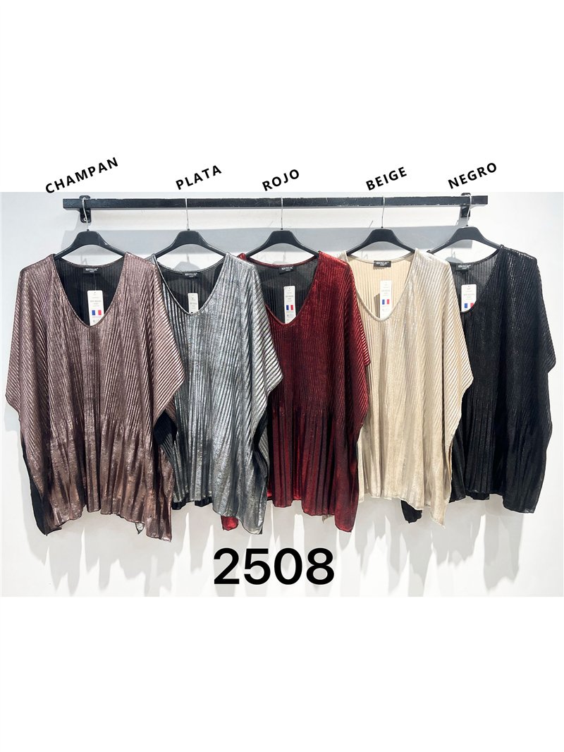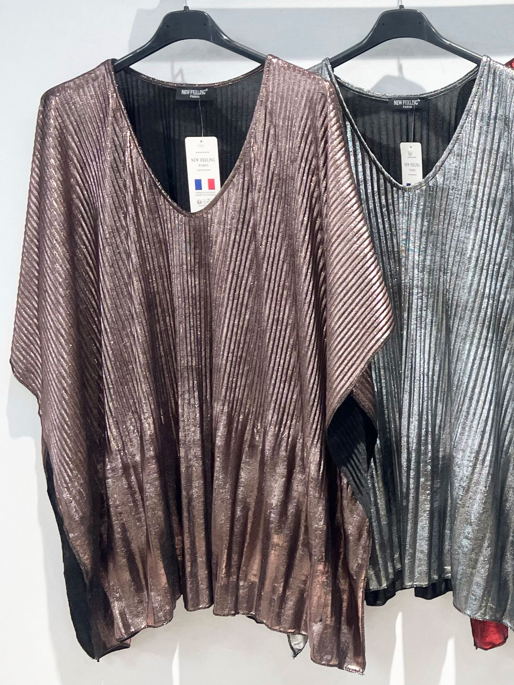 Dettagli di camicetta da festa maxi plissettata metalizzata SP-2508