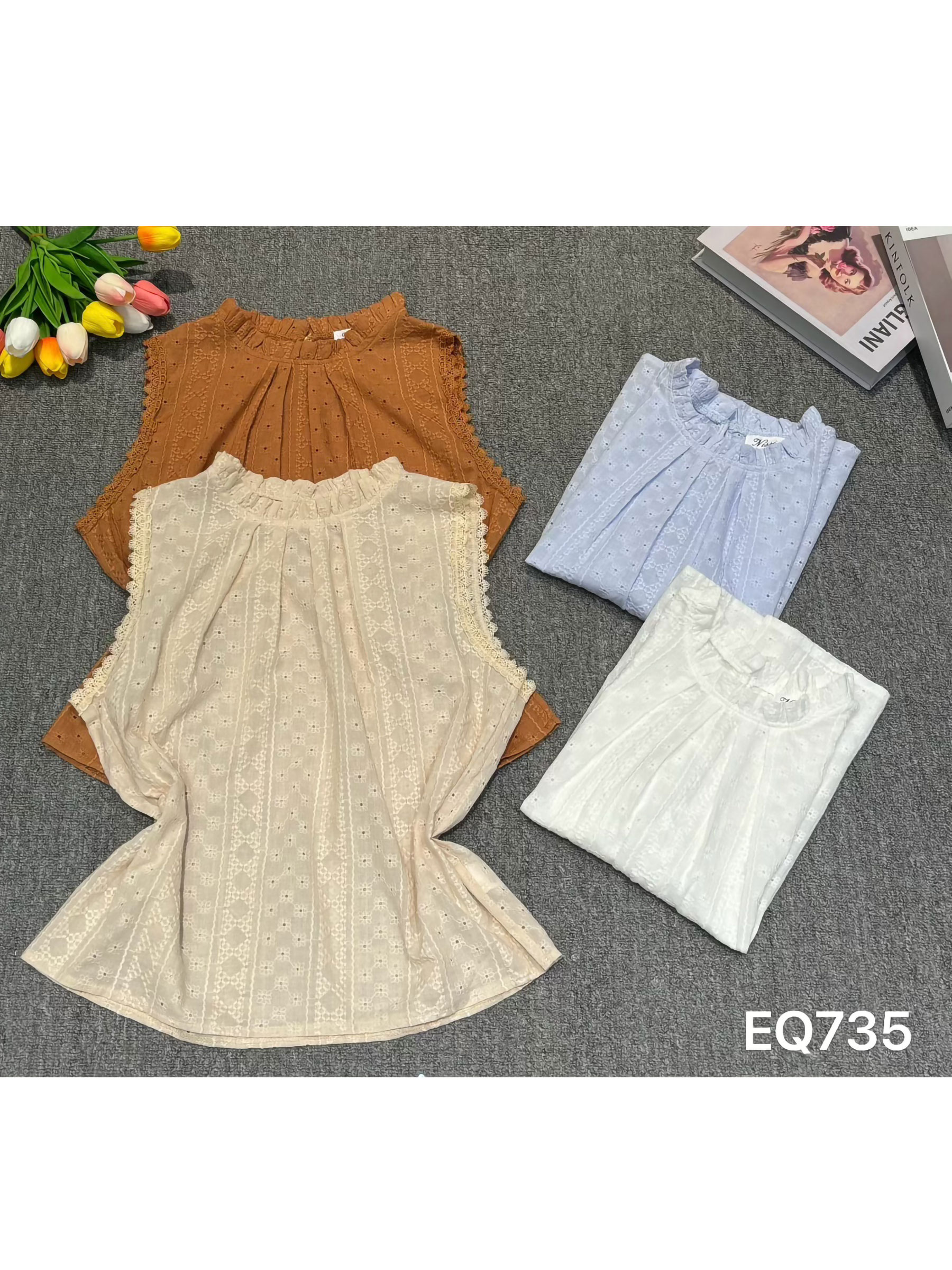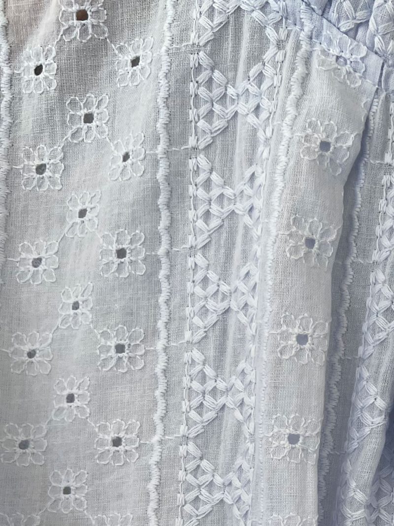 Camicetta ricamata con scollo traforato e arricciato