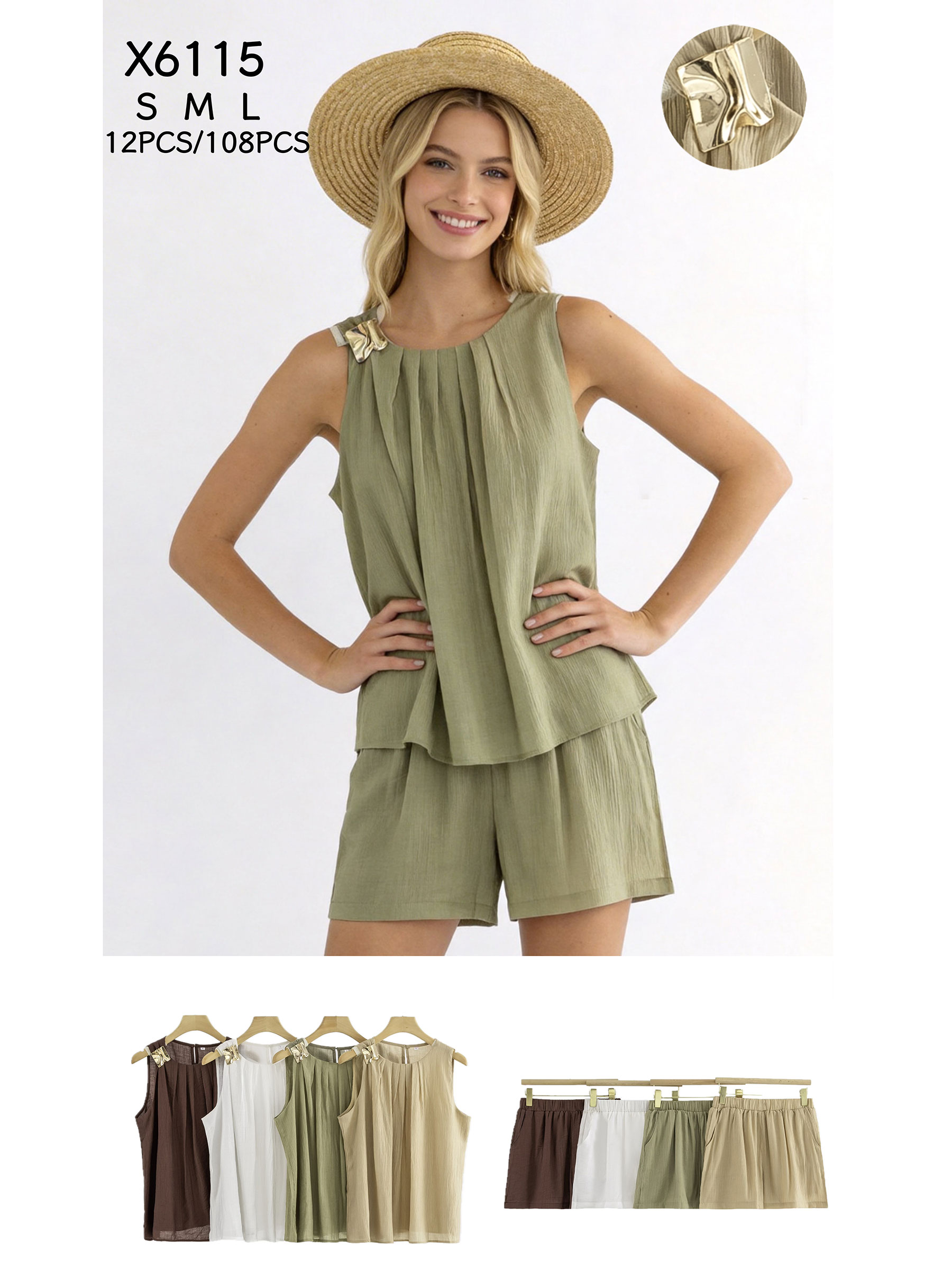 Completo top plissettato e shorts con dettagli gioiello.