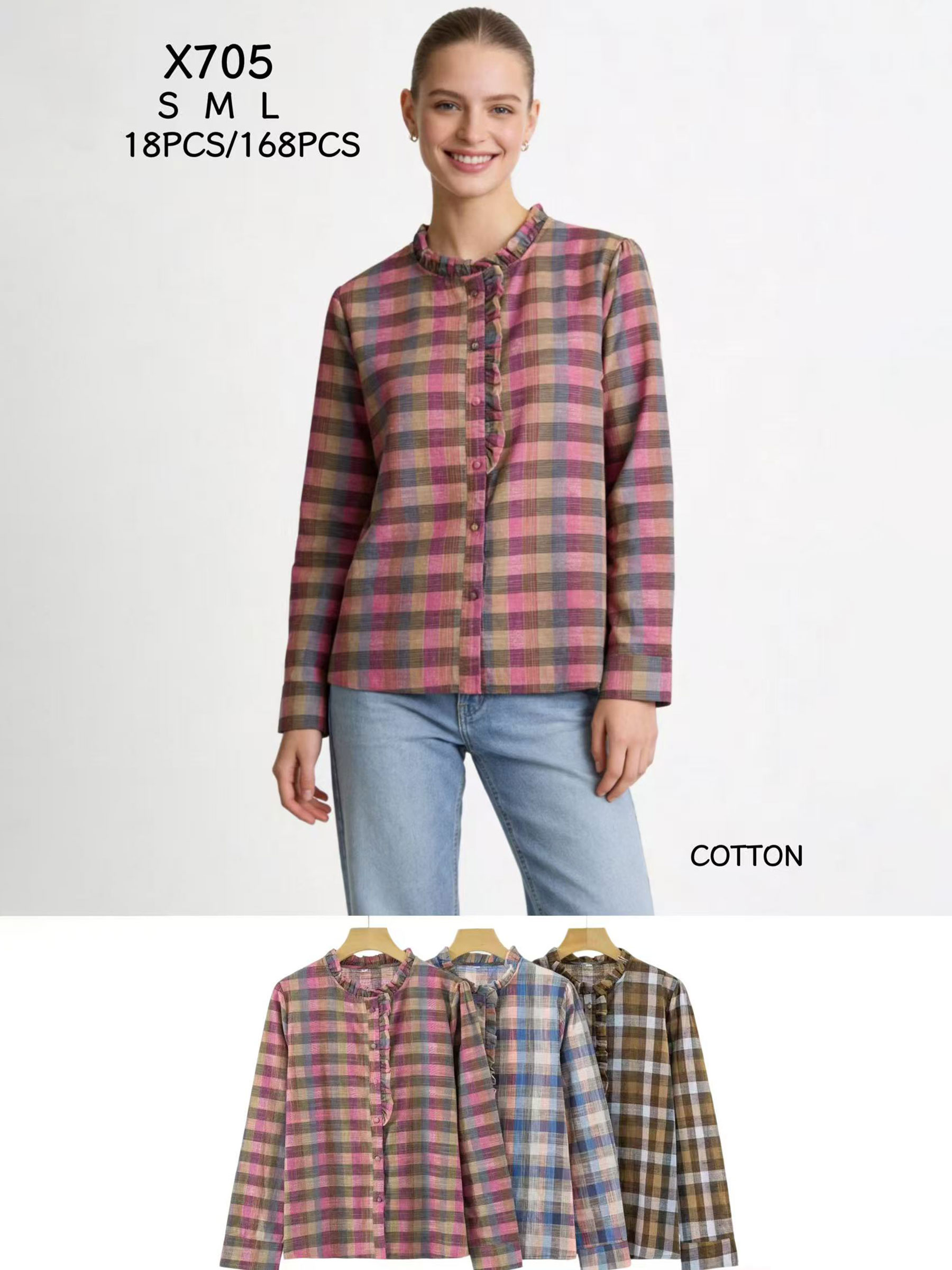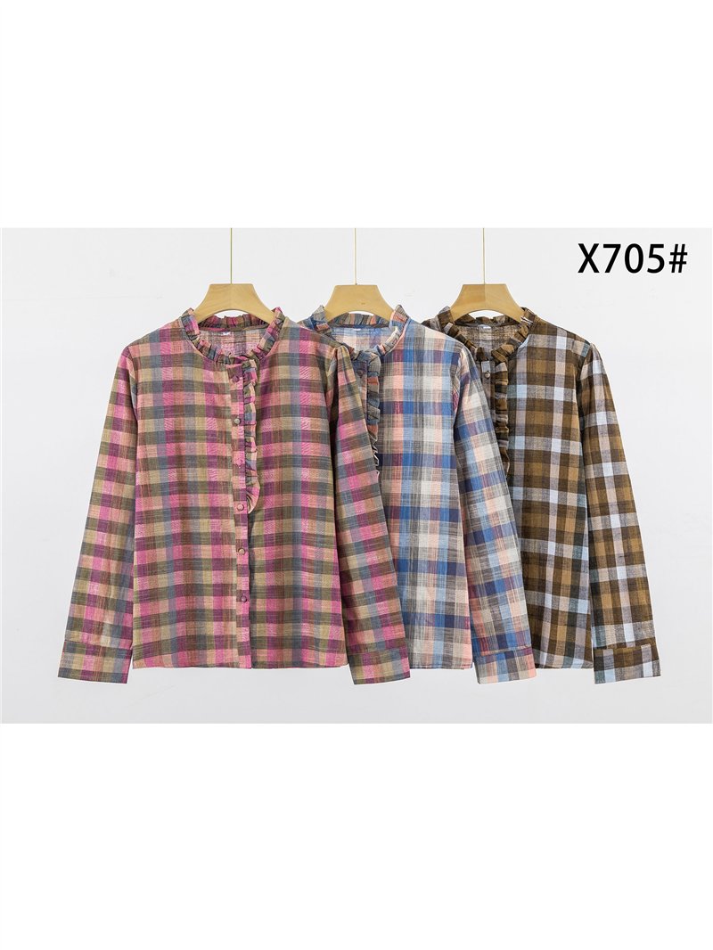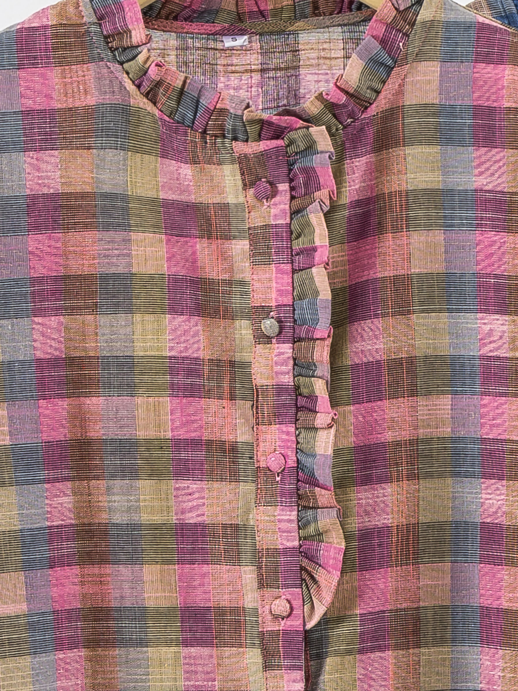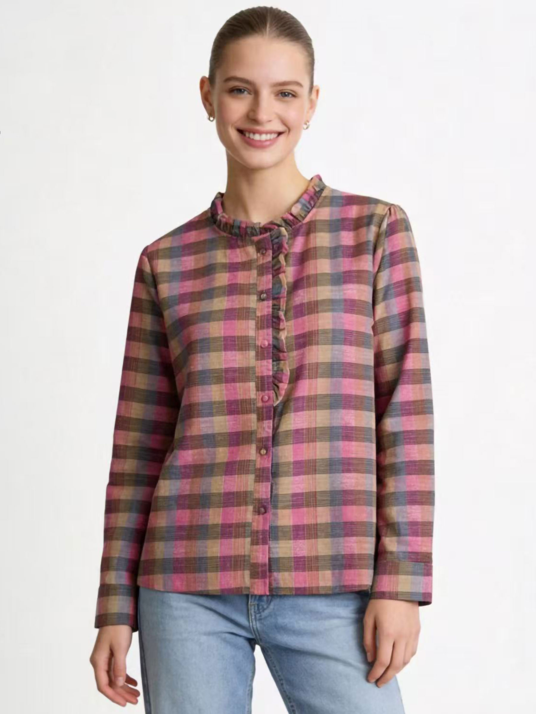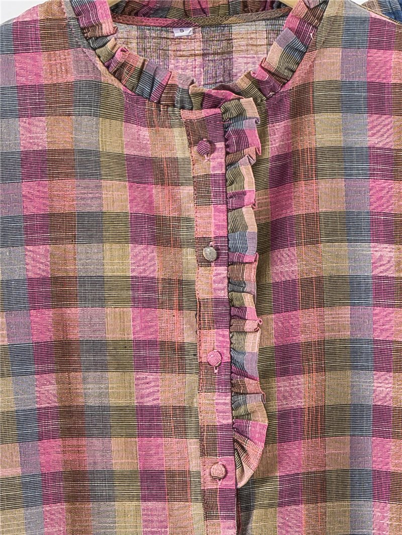 Camicetta a quadri con volant sul davanti