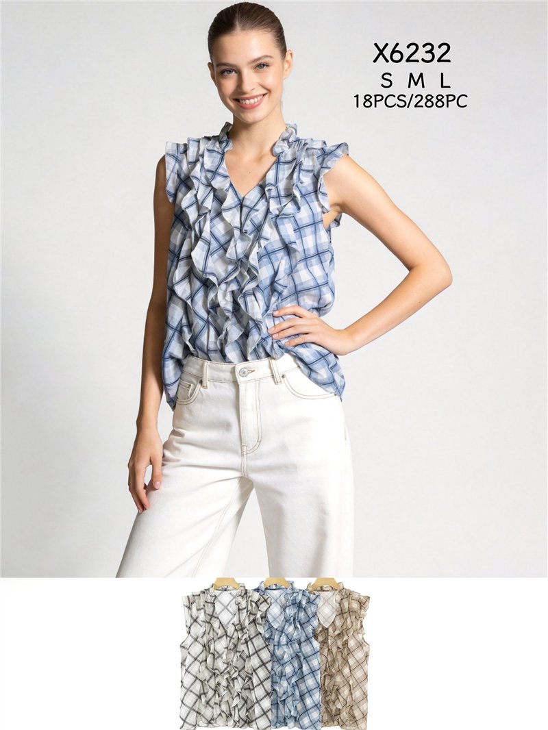 Camicetta a quadri con volant