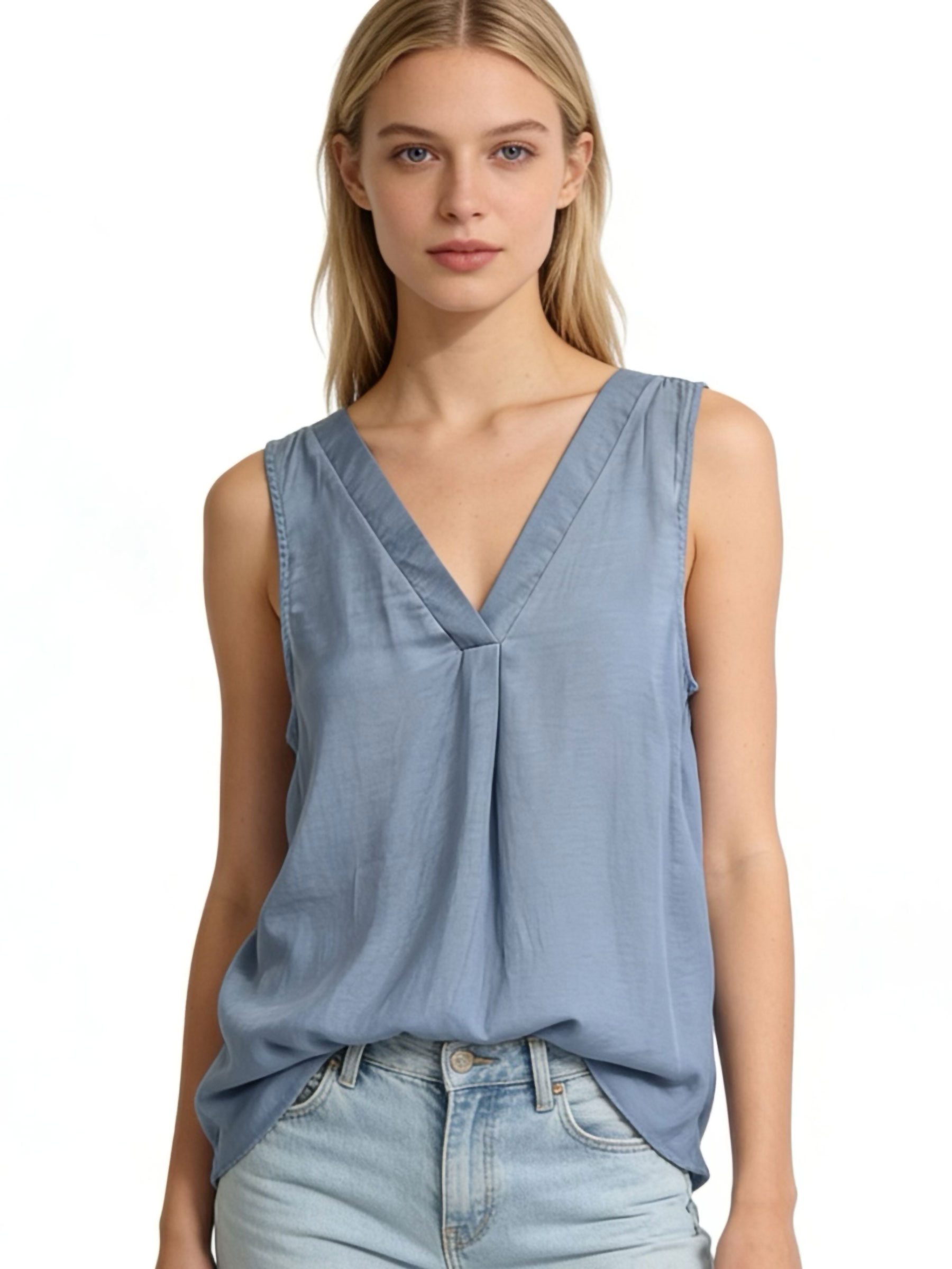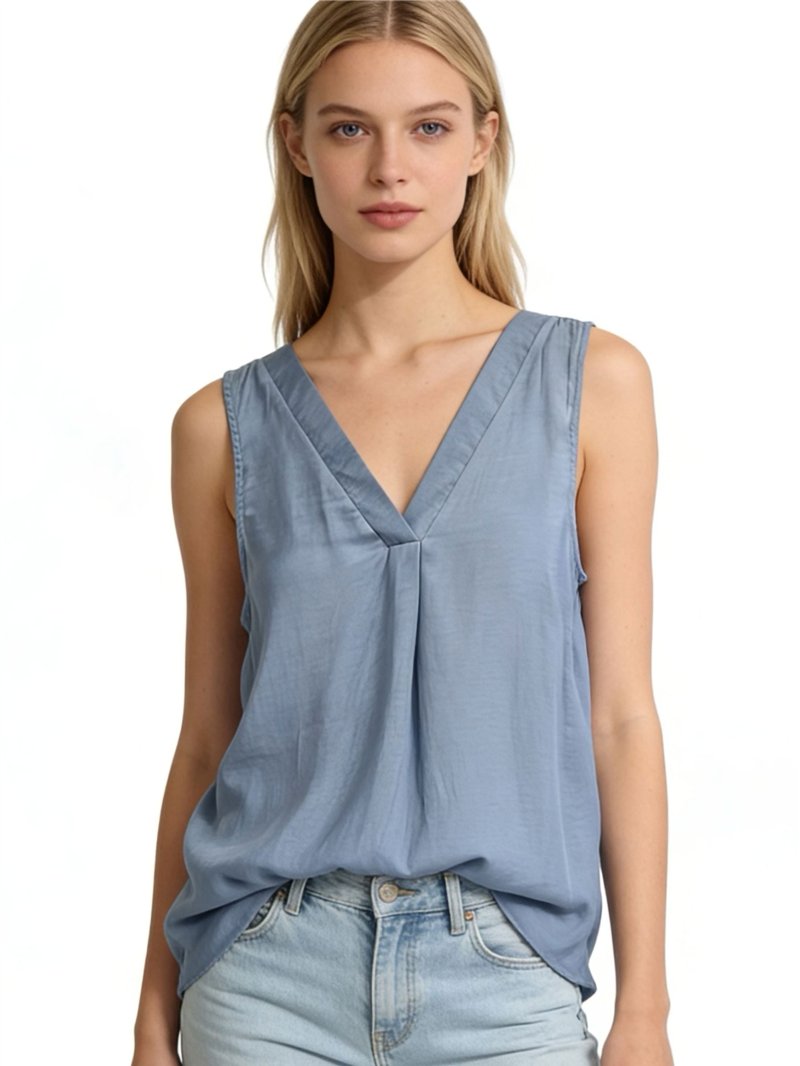 Top effetto seta con scollo a V