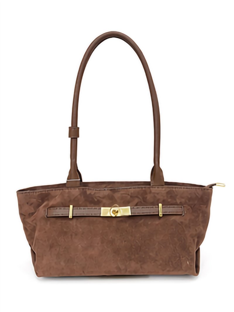 Borsa shopper in pelle scamosciata con dettagli in metallo.