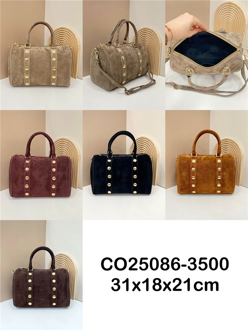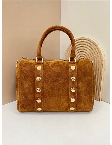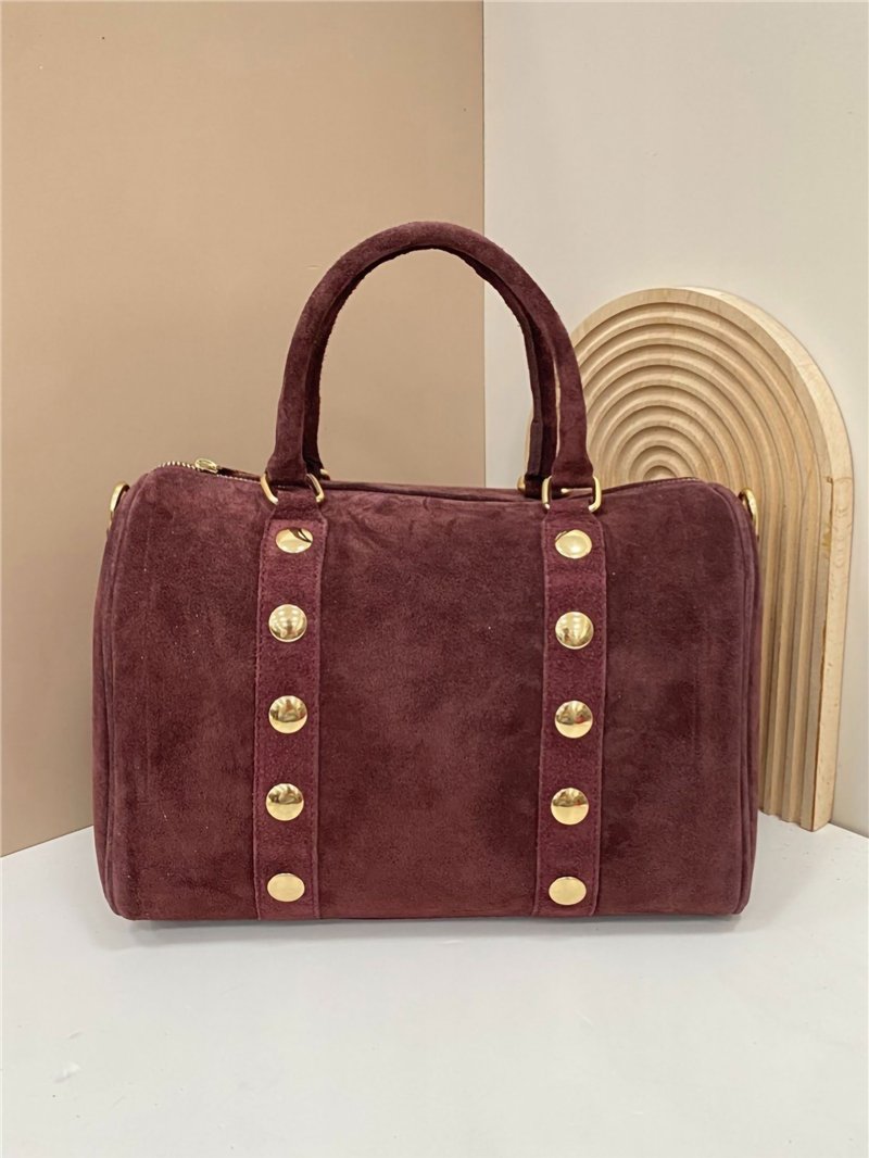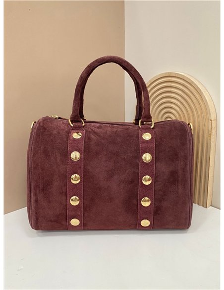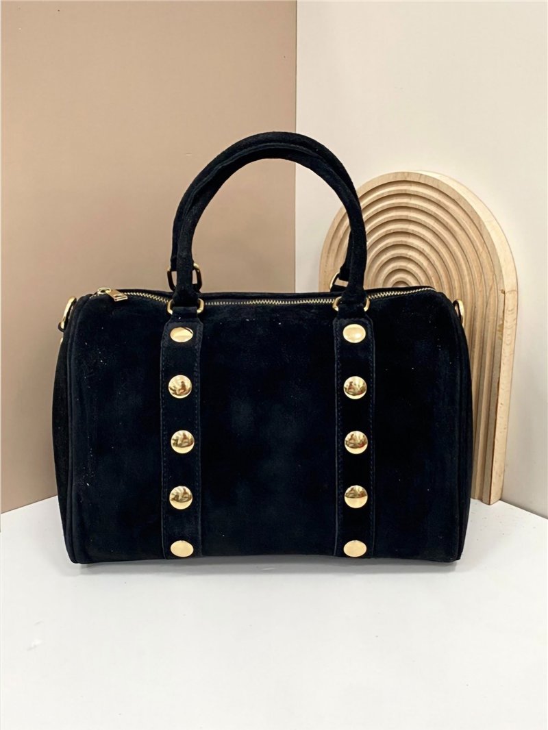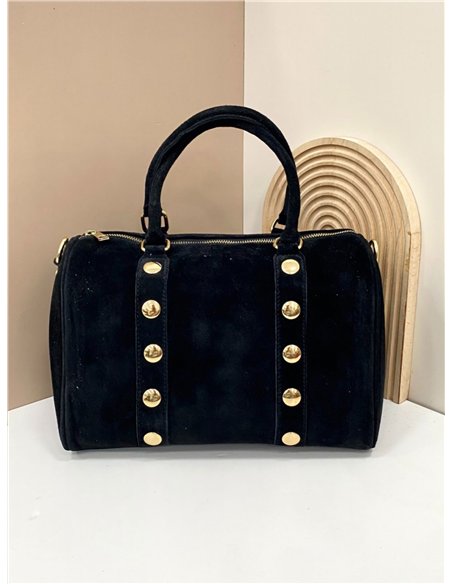 Dettagli di AB-CO25086 borsa bowling in pelle scamosciata con borchie.