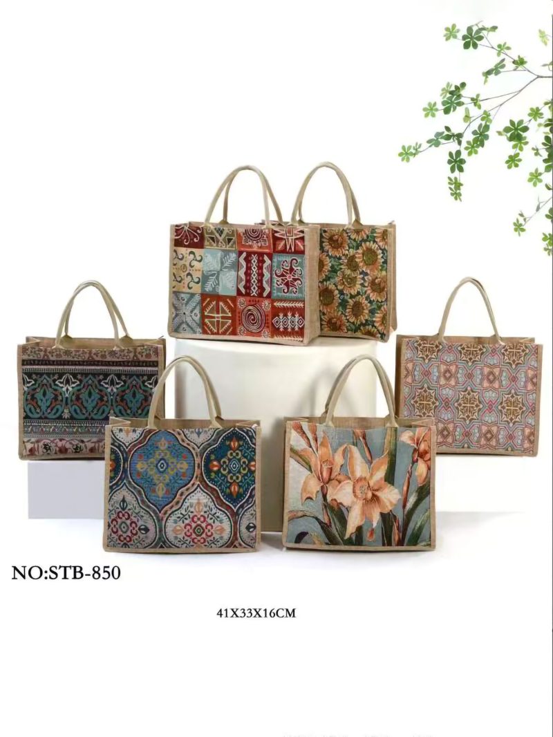 Borsa da spiaggia in iuta con stampa etnica