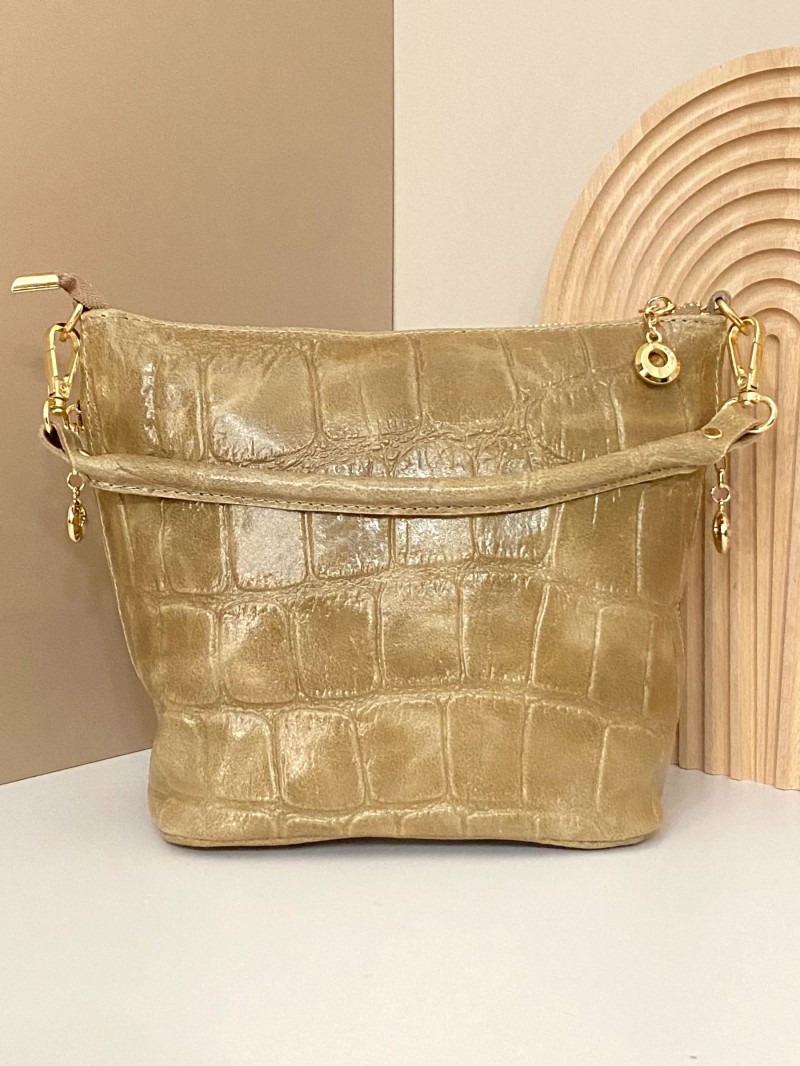 Mini Borsa in pelle stampata cocco beige