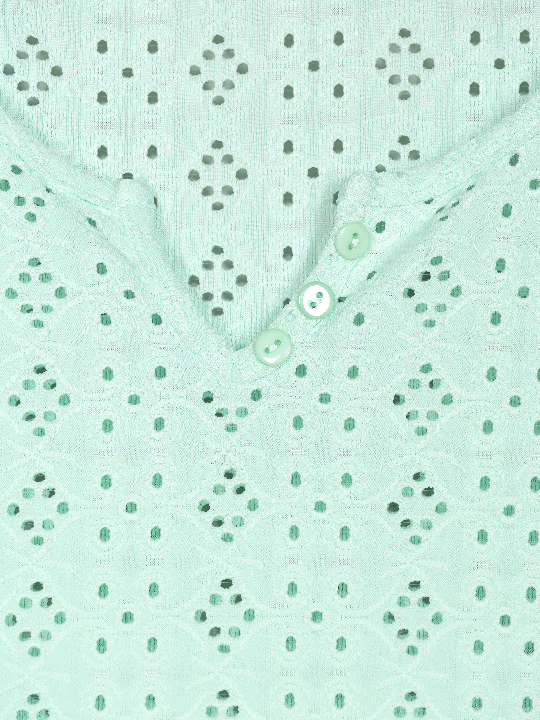 T-shirt ampia. Scollo a V. Maniche corte. Tessuto elasticizzato.